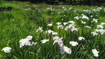 ピンクのアナベル、日本固有種のがくあじさい、名前にブルーアース、白寿紅とついたら品種が綺麗でした。種類も多くゆっくり楽しめました。紫陽花エリアから10分くらいにある水鳥の池を回った途中に花菖蒲園があり綺麗に咲いていて平日月曜日で人も少なくゆっくり楽しめリフレッシュ出来ました。