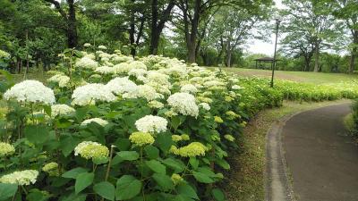 入口から10分くらいのふれあい広場北斜面には紫陽花が見頃近くになってました。