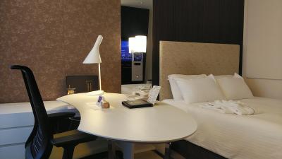 連泊ではじめて宿泊しました。部屋は15㎡のダブルルームAタイプで11階にアサインされ、予約時は狭いかなと思ってましたがコンパクトですが上手く工夫されていてよかったですね!部屋はデュベスタイルのベッドメイキングの160cm巾のベッドに加湿空気清浄機、部屋にはミネラルウォーターに緑茶、ほうじ茶が用意されてます。1階のエレベーター横のアメニティーバーで通常の歯ブラシ等のアメニティーの他、ドリップコーヒーに基礎化粧品、マウスウォッシュ、除菌シート等でよかったです。
