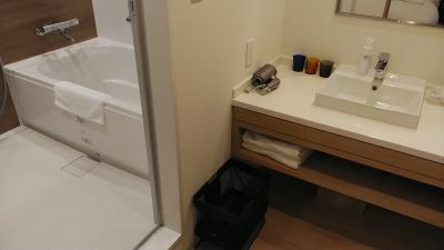 今回宿泊した部屋はホテル内で唯一お風呂、洗面、トイレ独立のプレミアムデラックスツイン40㎡でデュベスタイルのベッドメイキングのベッド2台に加湿空気清浄機、大型のスマートテレビにソファーにテーブルで快適に過ごせました。部屋は最上階の8階の駅のロータリー向きで静かで時々羽田空港に着陸の飛行機も見えました。またフロント階にアメニティバーがあり入浴剤や基礎化粧品のサービスもいいですね。
