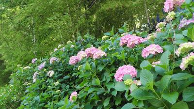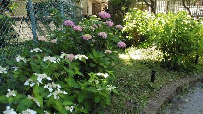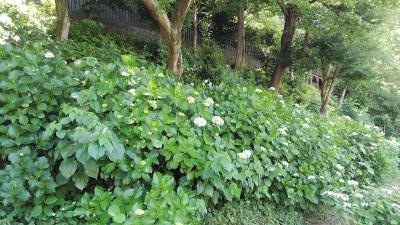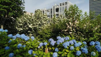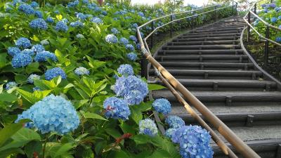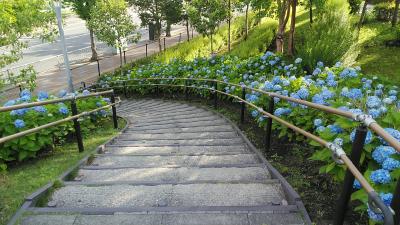 もう1カ所はゆりかもめ青海駅階段を下りた水の広場公園の紫陽花です。シンボルプロムナード公園からも歩いて5分程度です。- 旅行時期