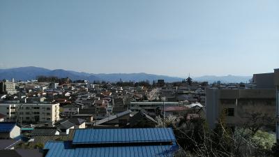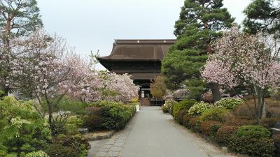 長野県桜巡りの旅1日目最後は善光寺の北側の高台にある善光寺雲上殿から善光寺の花見をしました。雲上殿は高台にあり満開のソメイヨシノに善光寺平の眺望も楽しめよかったです。善光寺から上り坂で歩くと20分くらいなので行きはタクシー帰りはゆっくり歩きがお勧めですね。善光寺本堂回りに桜もありゆっくり回るのがお勧めです!2日目は松本方面に(^^)
