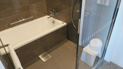 スイートなので少し厳しいコメントですが、部屋がダーク系の内装なのに白の延長コードに乱雑にマッサージチェアと空気清浄機がつながれていて少し興醒めだったり、部屋の広さに対してベッドが広すぎてベッドへのアプローチが窮屈でナイトテーブルが無いのが少し不便で残念でした。