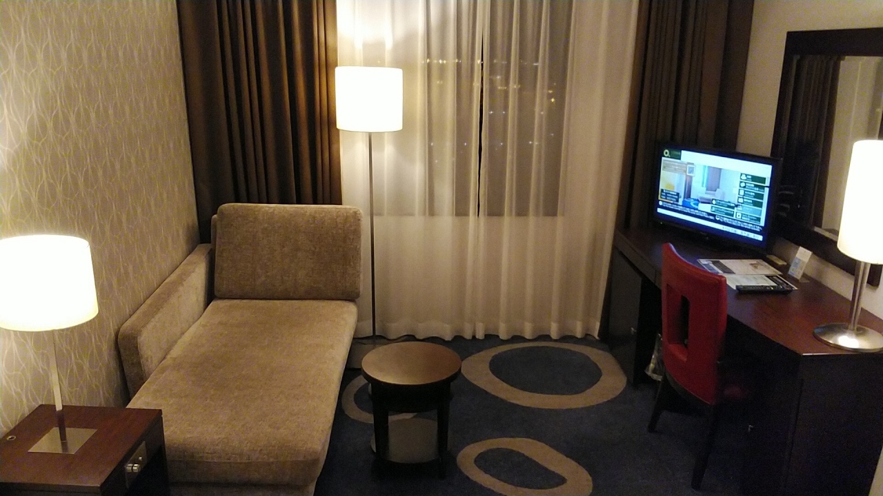 今回はイルミネーションがはじまった御堂筋側の最上階30階のニッコープレミアムツインにアサインされました。眺望は大阪のブランド街にPARCOに大丸から少し離れたあべのハルカスにイルミネーションも楽しめました!部屋はゆとりがあり140cm幅のデュベスタイルのベッドメイキングのベッド2台に窓側にロングソファーに御堂筋の銀杏をモチーフにデザインされた洗練されたオブジェに加湿空気清浄機で快適に過ごせました。バスアメニティはミニボトルのタルゴのシャンプー類に基礎化粧品にバスローブ、飲み物はミネラルウォーター、コーヒー、アールグレイ、緑茶、ほうじ茶で充実です。浴室は広めで独立のツーボールの洗面化粧台で使いやすいですね!ホテル内のレストランも充実ですが、地下から心斎橋大丸もつながっているので色々便利です。朝食と夜小腹がすいたのでビーフカレーをルームサービスでたのみましたが美味しくお勧めですね。今までは梅田に宿泊してましたが、心斎橋は徒歩圏に道頓堀や難波など大阪らしいスポットや食事買い物も便利で大阪の良さが楽しめるホテルで良いですね。