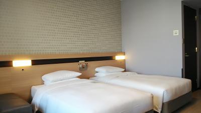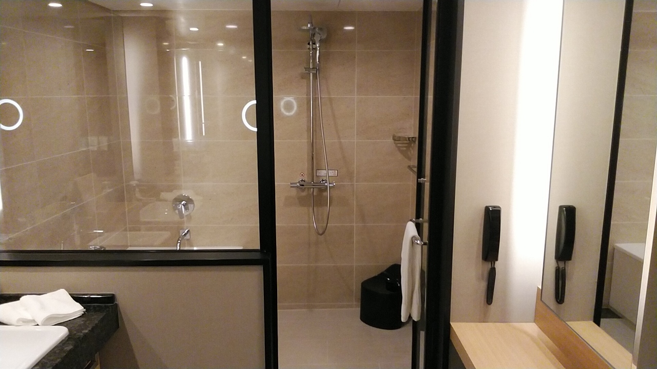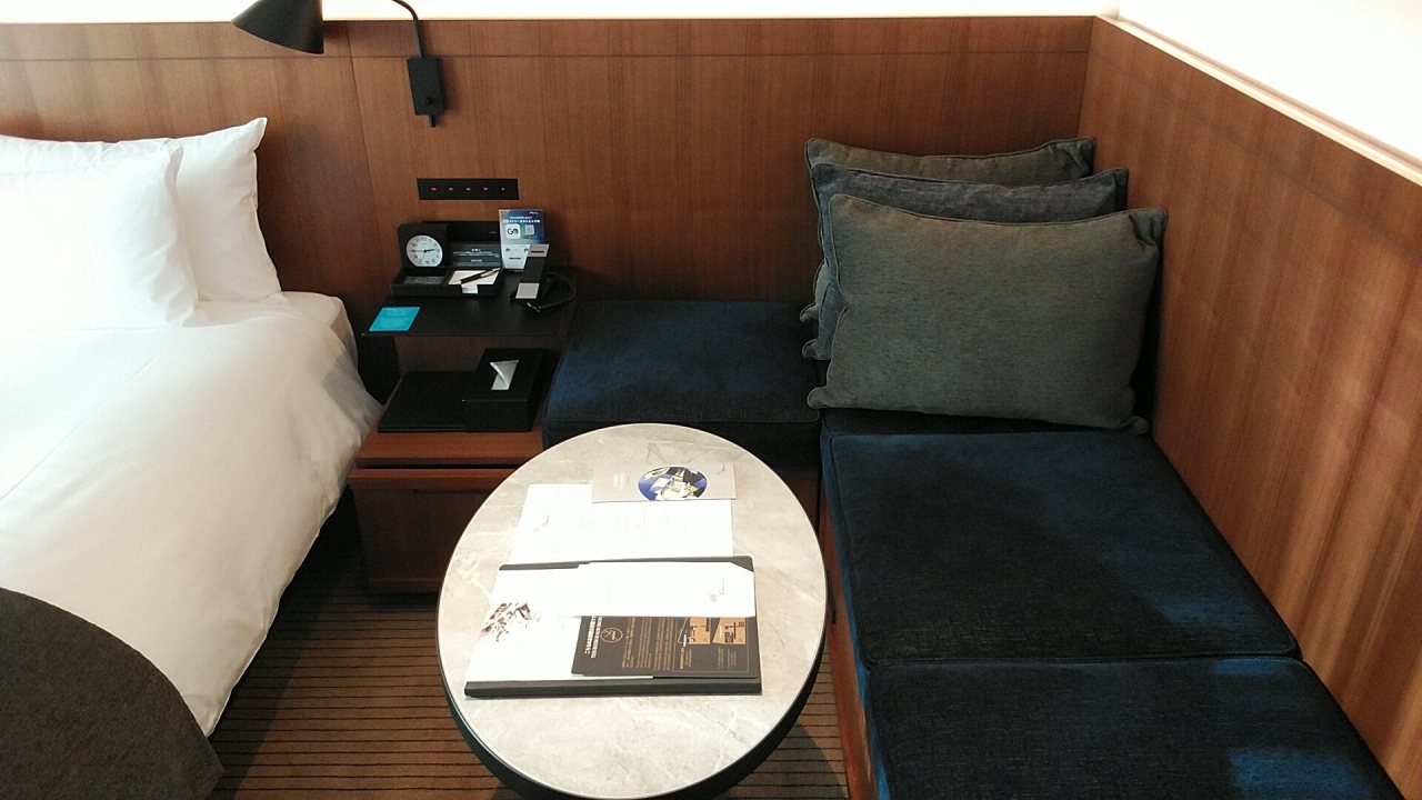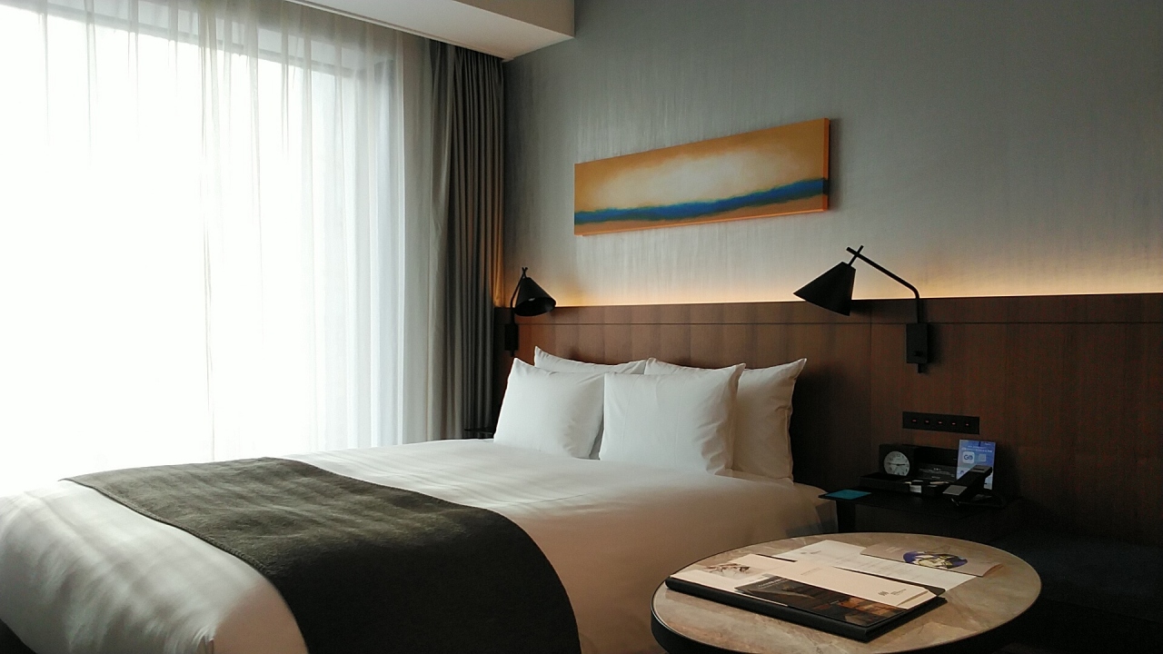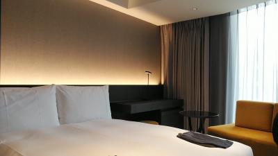 ホテル内で一番広いデラックスダブルに2泊しました。部屋は一番奥にあって窓も2カ所あって静かで良いですね!ベッドは168cm幅のデュベスタイルのベッドメイキングにマッサージチェア、加湿空気清浄機、窓も少し開くので換気もとれて快適でした。お風呂独立でレインシャワー、洗面台とトイレは同室ですが便利です。部屋の表示面積は29㎡ですが、水回りに廊下のスペースが多く表示面積ほど広くは感じませんでした。一人だったので快適でしたがマッサージチェア以外にイスは1脚しかないので2人だと少し不便そうですね!