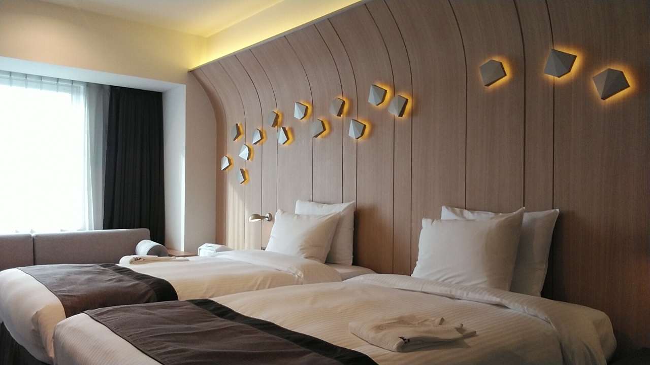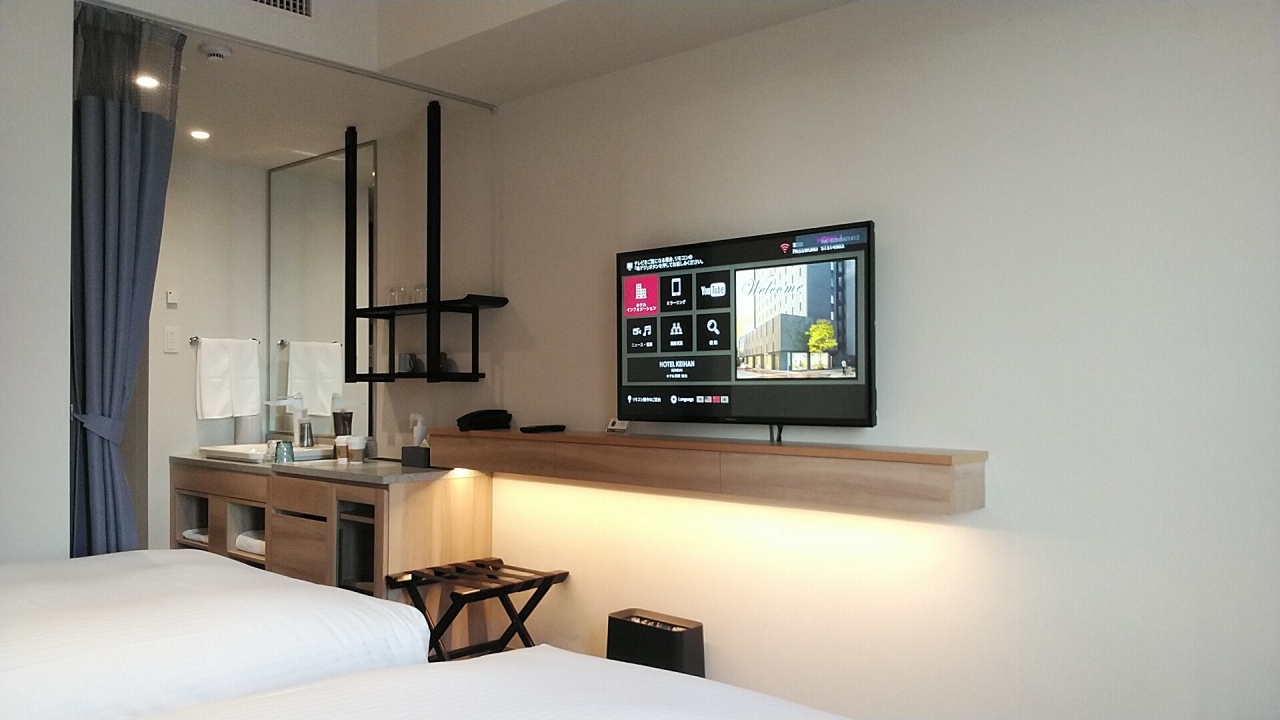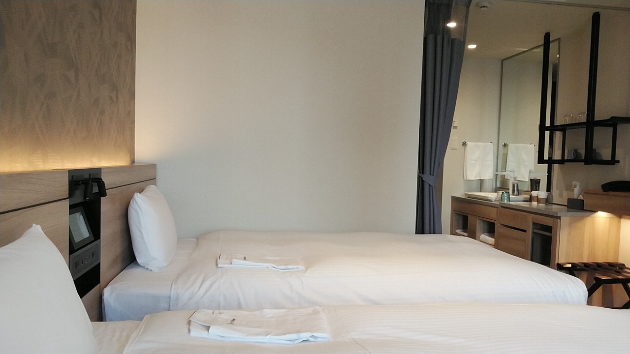 今回で3回目の宿泊で、前回と今回はツインに宿泊しました。シングルはユニットバスでベッドは広めで良いですが、ツインはお風呂が独立で室内に洗面化粧台があるので便利で快適でお勧めです。ベッドはデュベスタイルで加湿空気清浄機があってチェックイン時室内の湿度33%でしたが加湿器を付けたら50%になり快適でした。部屋は前回と同じ最上階の部屋を用意してくれたので仙台の夕陽から夜景が綺麗でした!ツインは南向きで高層階であれば仙台の夜景も望めます。ホテル2階にラウンジがありコーヒーマシーンのサービスや、ベンダーコーナーに製氷機、ウォーターサーバー、電子レンジ、洗濯乾燥機のランドリーがあります。まだ築年数が新しいので綺麗で近隣に飲食店等の買い物も便利でした。