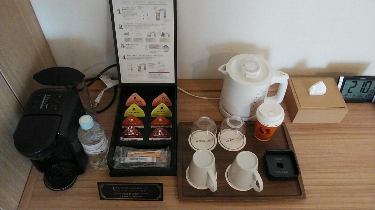 飲み物は部屋にミネラルウォーター、粉茶、梅茶で、フロント階にドリップコーヒーに紅茶があっていいですね。眺望は14階建ての12階で千葉駅方面の窓は隣の建物がありますが最上階14階だと眺望は抜けてそうですね!大きめな窓が2カ所あるので圧迫感もなくよかったです。アクセスに買い物も便利でスタッフも笑顔でよかったです。- 旅行時期
