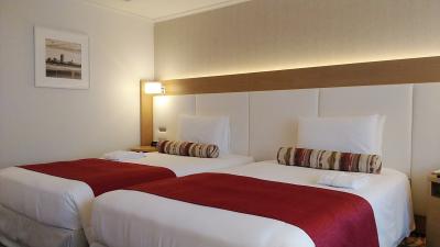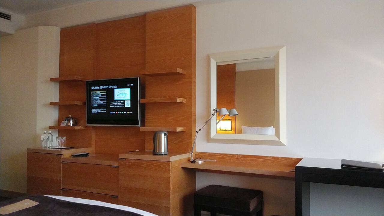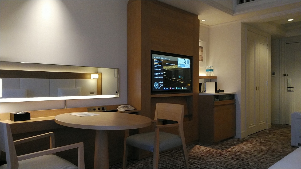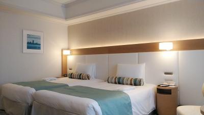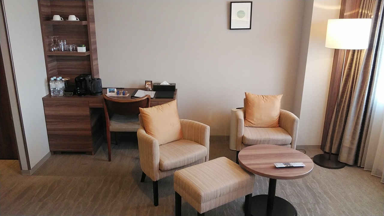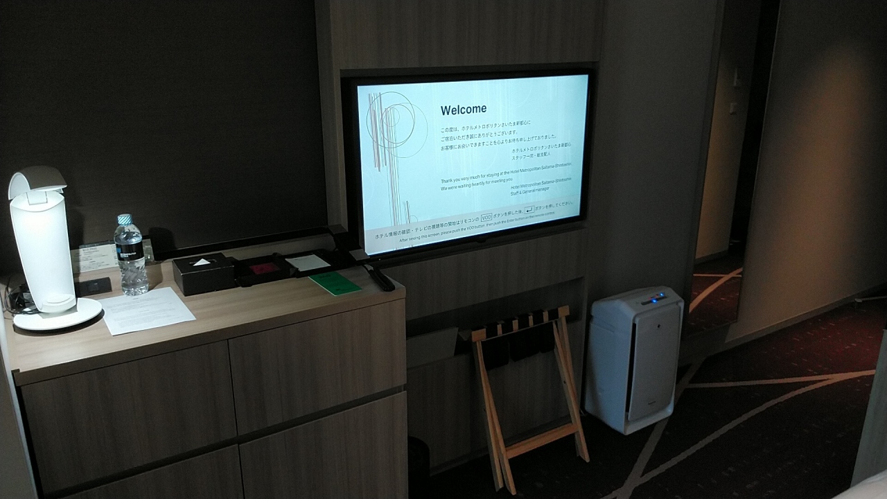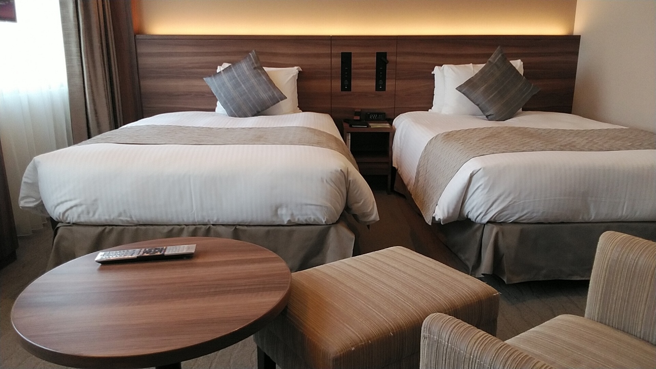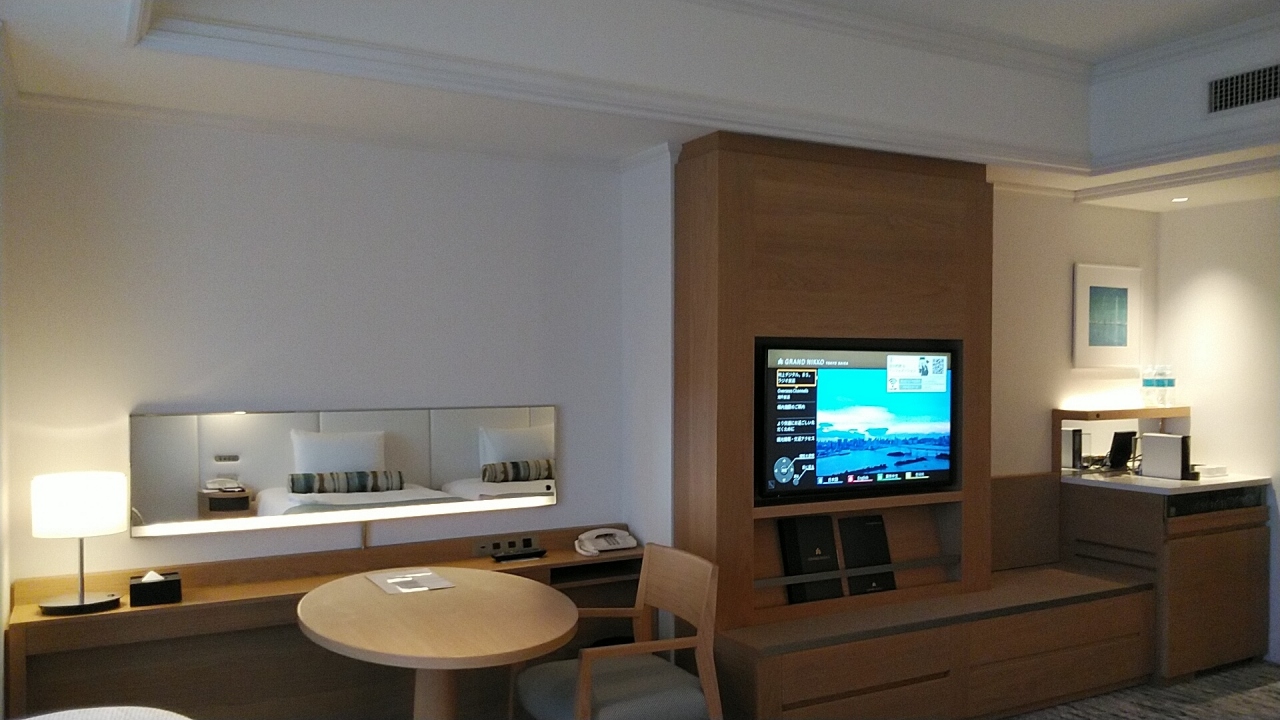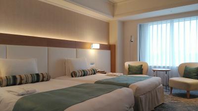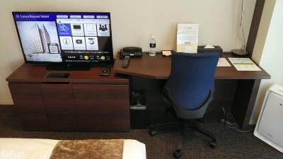 口コミでリニューアル前の部屋はコンセントが少なく不便と口コミがあったが、さすがに2020年にリニューアルした部屋は改善されてると思ったが、コンセントはベッドサイドに1カ所で、ホテルのサイトの部屋のコンセプト以下(幅180㎝のキングサイズのベッドのお部屋です。独立型のデスクとソファも確保。書類を広げながらものんびり過ごしたいビジネスマンにおすすめのお部屋です。)ですがデスクにコンセントも無く、不要に大型のテレビでデスクワーク出来るスペースも少なく、電気ポット用のコンセントが無く床に直接置かないと使えない、部屋が30㎡でゆとりのスーペスがあるのにベッドは壁にぴったり設置されていて奥の人が入ってからでないと手前の人は寝られなく快適に過ごせないプランニングで驚きましたw全室加湿空気清浄機設置と書いてありましたが空気清浄機のみで加湿空気清浄機をもって来てもらいました!また安いホテルでもないのにコンセントの延長コードを頼みましたが、1回目はアース付の延長コードでコンセント口に差し込み出来なく、また次にもってきた延長コードは容量が小さくポットでお湯を沸かそうと思うと延長コードのブレーカーが落ちて使えなく、これ以上言うのも疲れ結局は洗面台のドライヤー用のコンセントで沸かしましたw