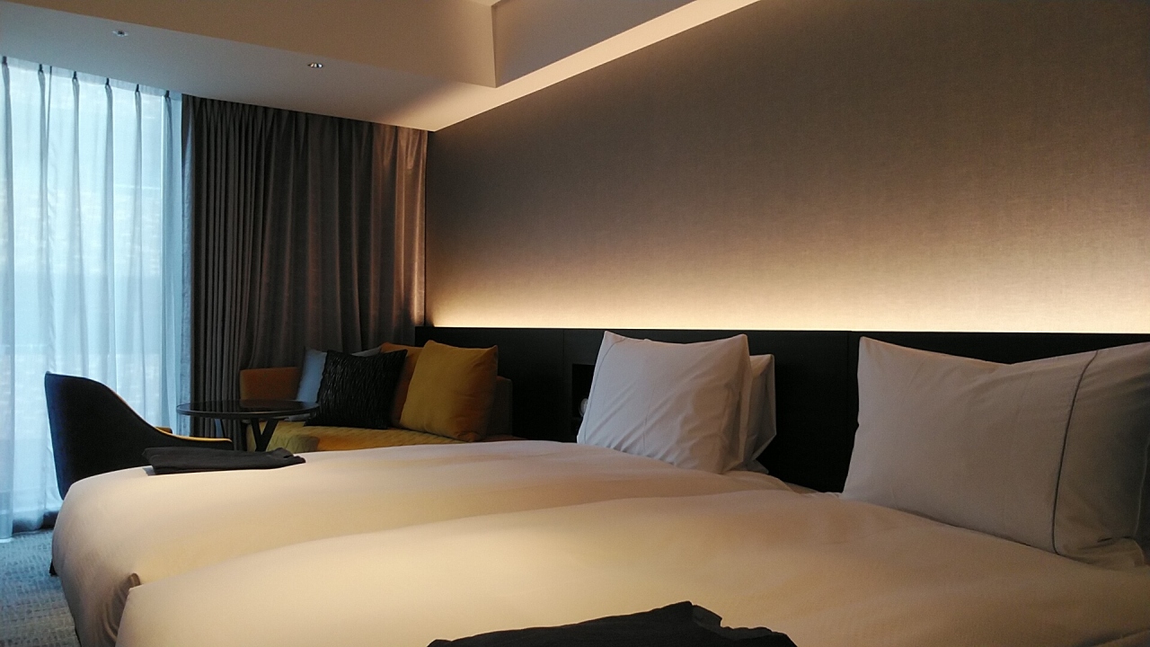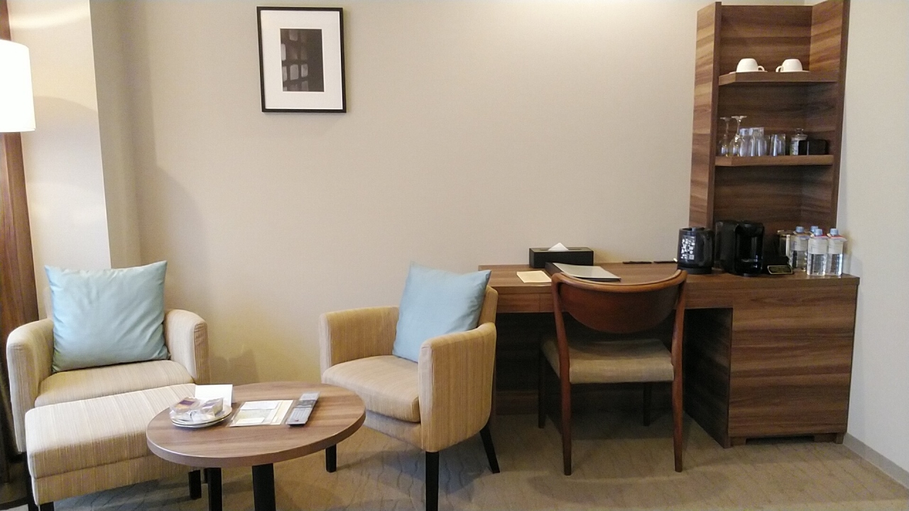 いつも大阪で宿泊は梅田が多いですが、ホテル日航大阪のホームページをたまたま見たらリニューアル済みの客室が魅力的だったのではじめて宿泊してみました。地下鉄心斎橋駅直結で買い物に食事も便利でした。今回宿泊のニッコープレミアムツインは28階から30階に客室があり42㎡から47㎡で、ベッドはデュベスタイルの140cmのツインに加湿空気清浄機、バーコーナーも充実でネスプレッソ、アールグレイ、ミネラルウォーター等、浴室は独立で広め、洗面台は2ボールに、香りの良いタルゴのミニボトルのシャンプー類にバスローブで御堂筋の眺望に大阪の夜景を楽しみゆっくりしました。ルームサービスで夕食と朝食をたのみましたが食の大阪らしく美味しくよかったですね!フロント、ルームサービスのスタッフも対応が良く心地よい滞在でした。