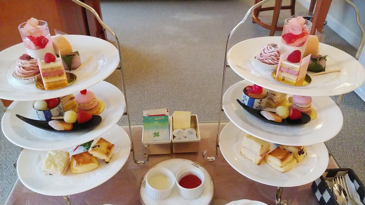 先月に続き春らしいアフタヌーンティーを客室でゆっくり楽しみました。