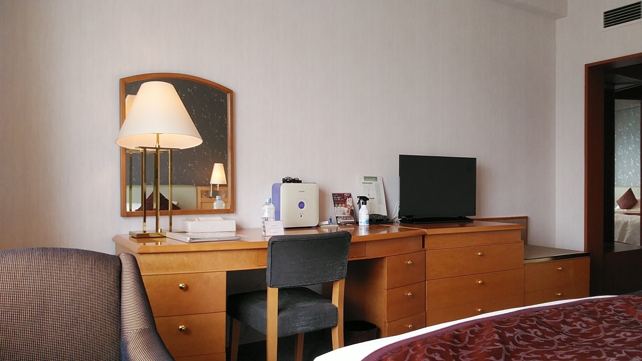 翌日新幹線乗車のために宿泊しました。部屋は24㎡のツインに宿泊で11階にアサインされました。ツインの眺望は大きな窓から北向きの宇都宮方向のため高い建物も無く眺望も開けていて新幹線も見えました。部屋は改装済みでデュベスタイルのベッドメイキングに大きめなテーブル、コーヒー、ほうじ茶、ミネラルウォーター等で11階には製氷機もあって便利でした。館内利用券付きプランの6000円でホームページには無かったですがルームサービスで中華をたのみ、2階のパティスリーでケーキにちょっとしたお惣菜にパンも美味しくよかったですね!リクエストすれば空気清浄機を部屋に用意してくれますがホテルのランクからして標準装備して欲しいですね。また埼玉県にはシティホテルも少なく良いホテルなので頑張って欲しいですね。