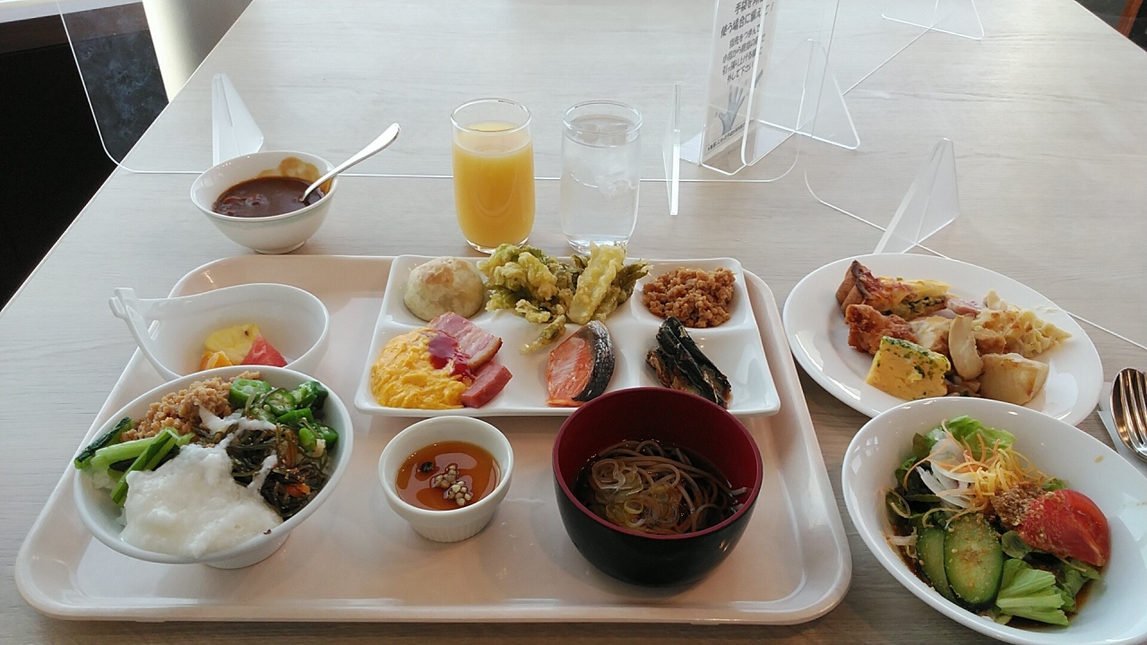 東北の桜の旅3日目最終日に宿泊しました。最上階9階デラックスコンフォートツインにアサインされ部屋はコーナーで窓が2カ所あり青森のベイブリッジから三角のアスパムと綺麗な海が見え良い景色に癒されます。部屋はシモンズのデュベスタイルのベッドメイキングに加湿空気清浄機、アメニティもデラックスコンフォートは良くなっていてコーヒーマシーン、紅茶、ミネラルウォーター、入浴剤、マウスウォッシュ等で快適でした。朝食は人気の青森の美味しい物がたくさんあり、ホタテカレー、海鮮、アップルパイ、りんごジュース、黒酢の酢豚も美味しく食べ過ぎました!席の間隔も広く感染症対策もしっかりしてますね!今年の桜の旅最終日のクライマックス弘前城の桜も満開になり青森を満喫できました(^^)