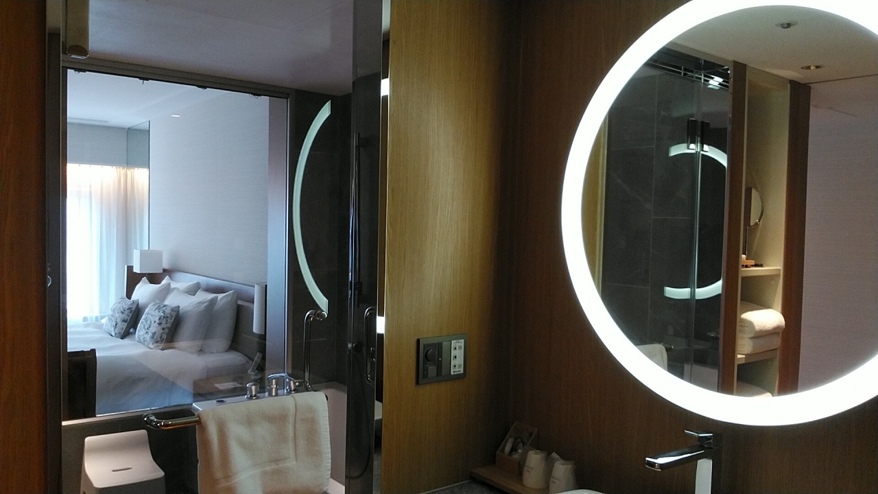 スーペリアフロアスタンダードツインは北方向の客室で13階14階の最上階にあるのでスカイツリーを中心に西方向に東京駅の高層ビル群、東方向に佃島のタワーマンション群の眺望が楽しめます。通常フロアだと前のマンションで眺望はふさがれそうなので眺望を望むならスーペリアフロアですね!アメニティはイリーコーヒーのespressoが1室3杯にC.O.Bigelowのスキンケアセット、ミネラルウォーター、シャンプー等が通常フロアより良くなってます。部屋は23㎡でコンパクトですが窓が大きく天井も高く開放的で、浴室トイレ独立で廊下に洗面台もあって利用しやすく、ベッドメイキングはデュベスタイル、加湿空気清浄機、窓にも給気口があり快適でした。翌日有楽町で用事があり歩いて15分くらいだったのでよかったですね!内装に設えも好みでお気に入りのホテルです。