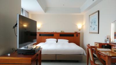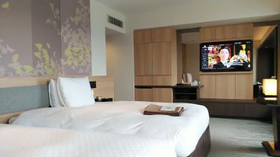 今回は13階14階にあるエグゼクティブスーペリアルームダブルに宿泊しました。部屋は最上階14階にアサインされて眺望も開けていてよかったですね。エグゼクティブルームでも広さはダブルルームと同じでアメニティがコーヒーマシーンや化粧水等が充実してました。フロント階でミネラルウォーターがもらえます。部屋はデュベスタイルのベッドメイキングに加湿空気清浄機で快適でした。コンパクトながらお風呂独立していて良かったです。テレビは小さめでもう少し大きなYouTube等見られるテレビだと良いですね!1ヶ月前予約で比較的宿泊費が高い土曜日もリーズナブルでよかったです。また大阪城も行きやすく満開の綺麗な桜が見られました。