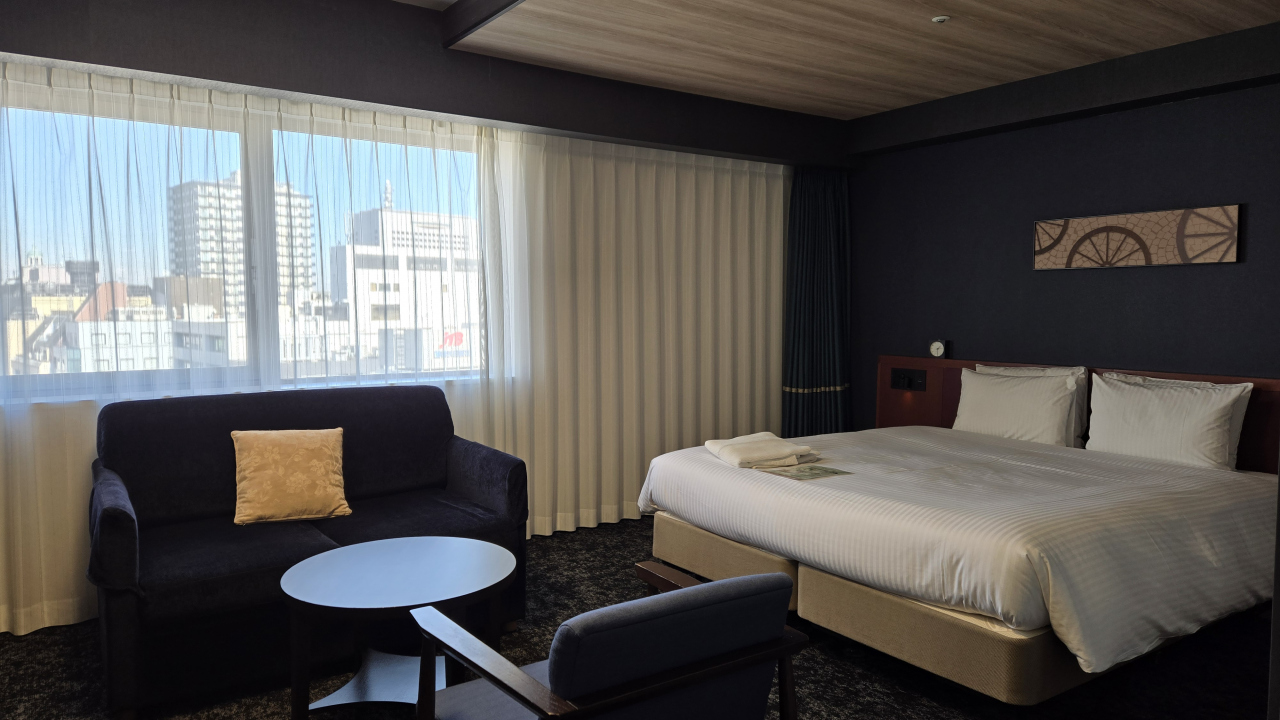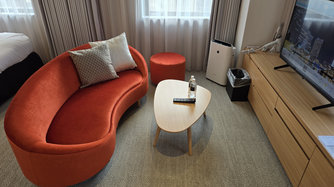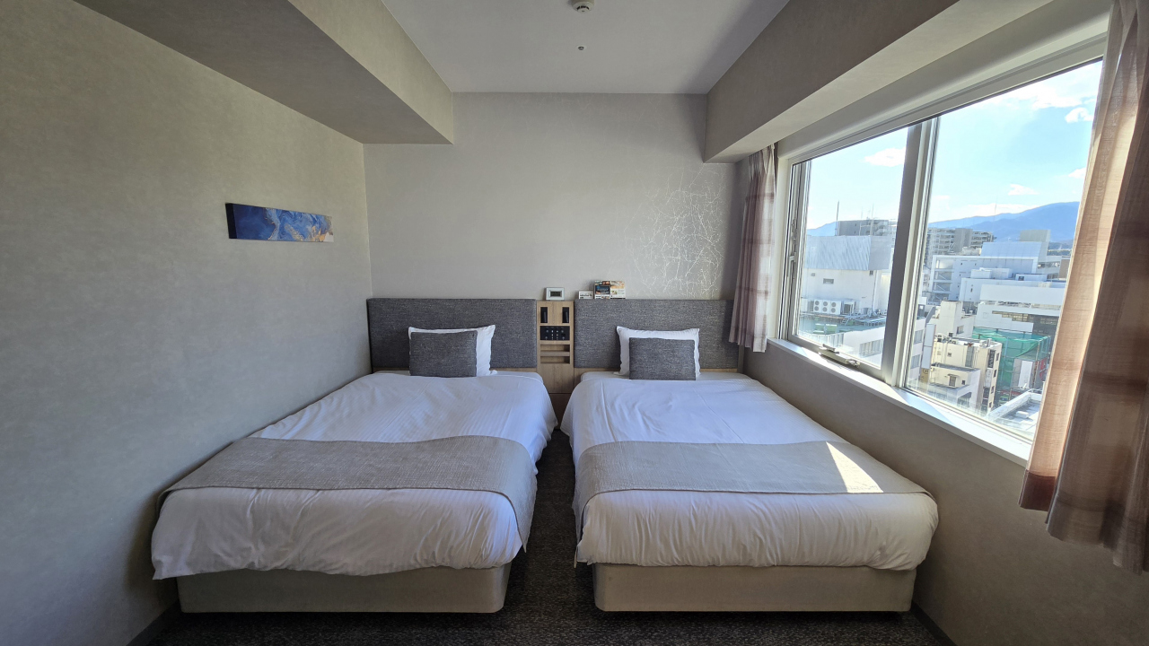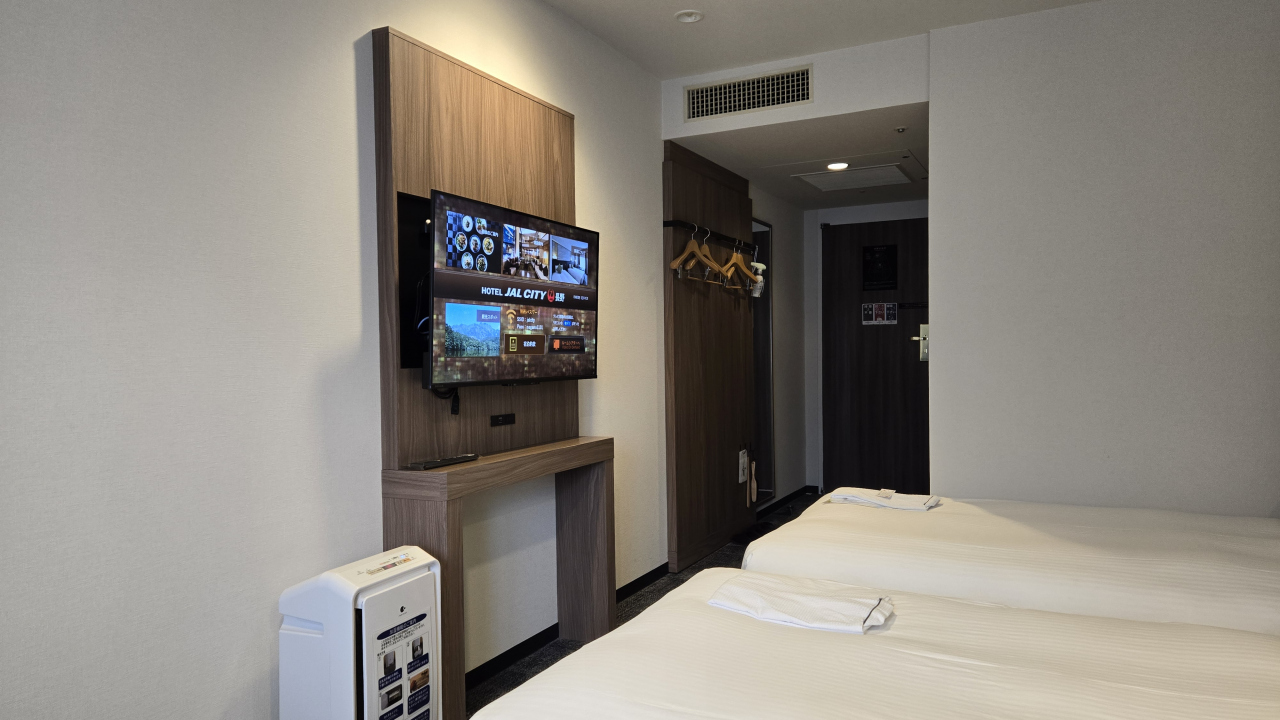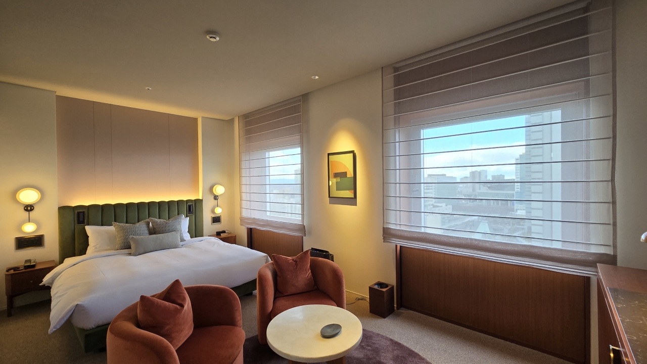 2024年4月に9〜11階がリニューアルされ今回はニュースタンダードフロアのツインルーム11階にアサインされました、部屋はシモンズのデュベスタイルのベッドメイキングに、壁掛けのテレビ(角度が動きます)、加湿空気清浄機で、家具のレイアウトは窓側にソファーにテーブル、机、冷蔵庫等と使いやすくスッキリしていて良かったです