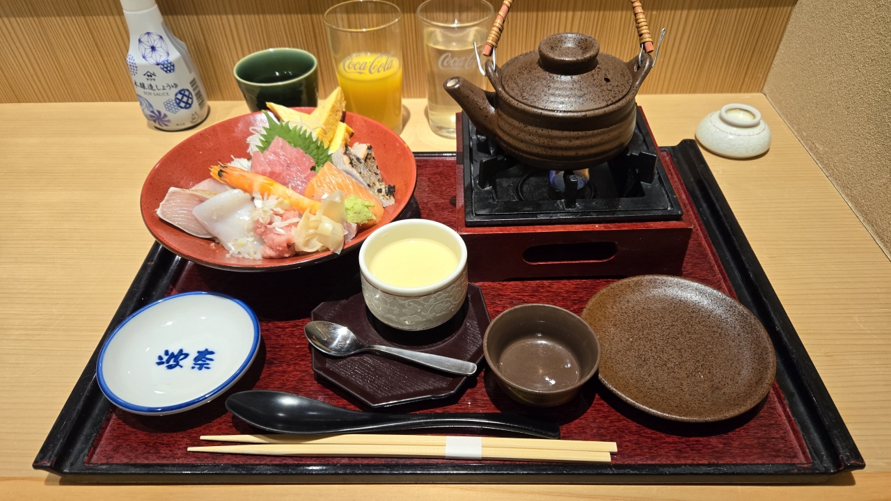 朝食は当日追加しましたが2会場から選べて、トンカツ等のビュッフェか海鮮丼から選べ、海鮮丼を選びましたが、具沢山の新鮮な海鮮丼に土瓶蒸し、茶碗蒸し、ドリンクはフリーで美味しくお勧めの朝食ですね。