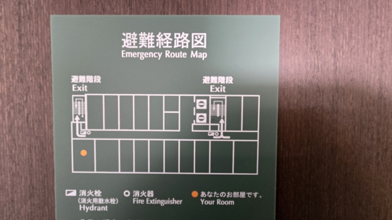 また客室が7階と8階のみで客室数は66室で多くないですがエレベータが2基あるのも待たなく良いですね、アメニティは部屋に用意されていて、飲み物はミネラルウォーターに緑茶があります