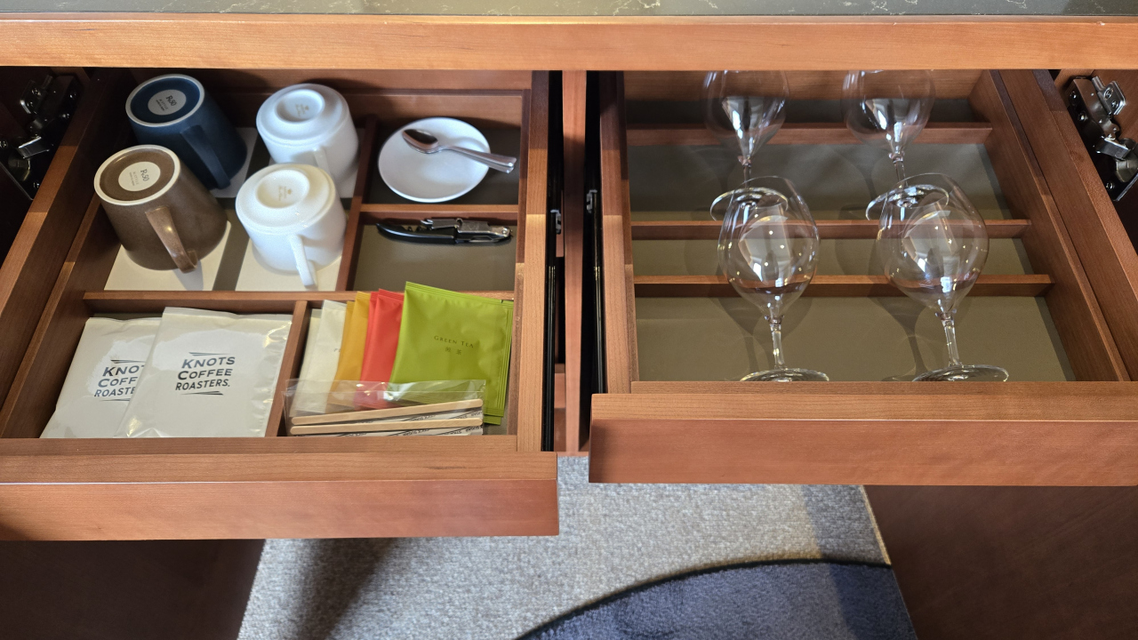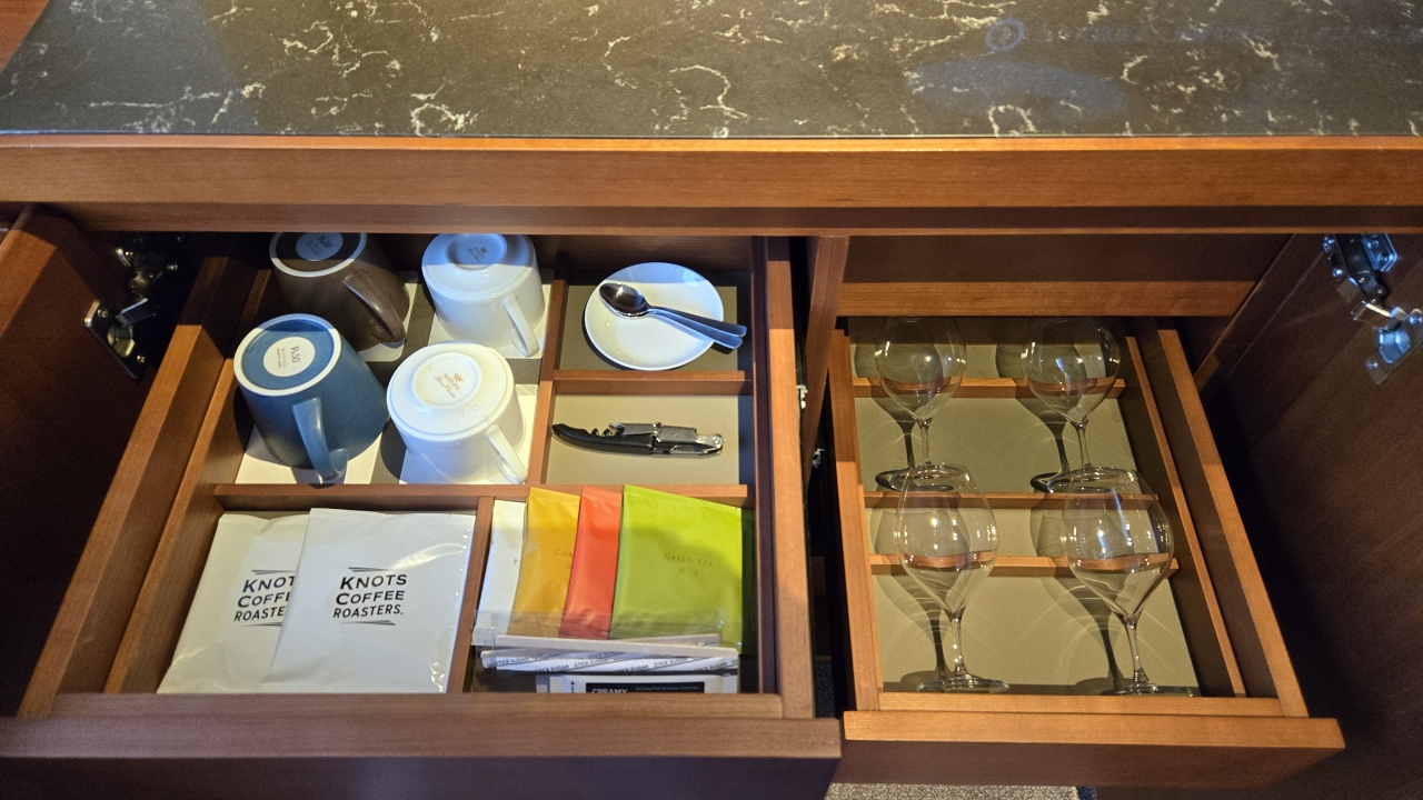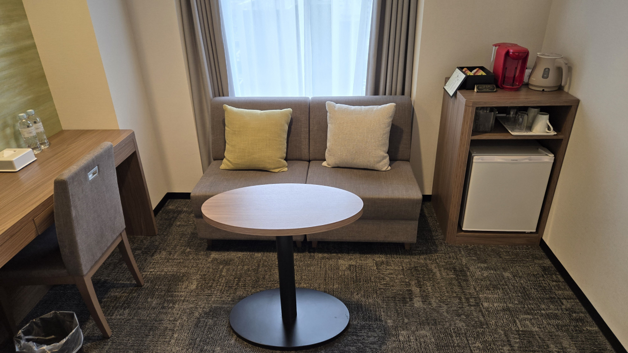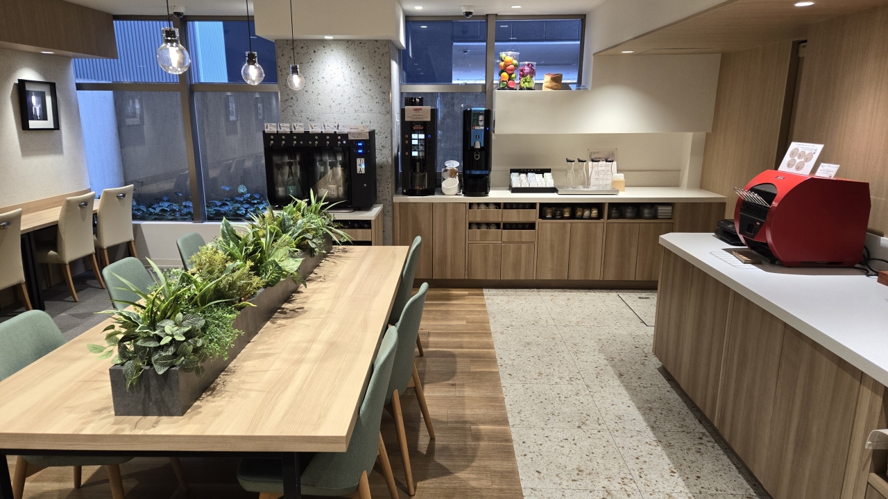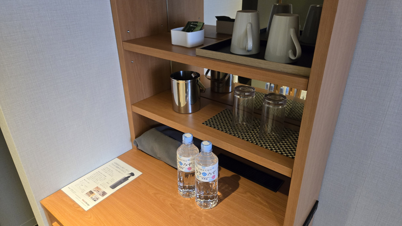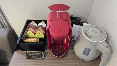 部屋にはドリップコーヒーに緑茶が用意されていて、その他はフロント階の3階のアメニティバーに用意されてます、また朝食会場が朝10時からラウンジとして利用できでドリンクは無料で飲めます