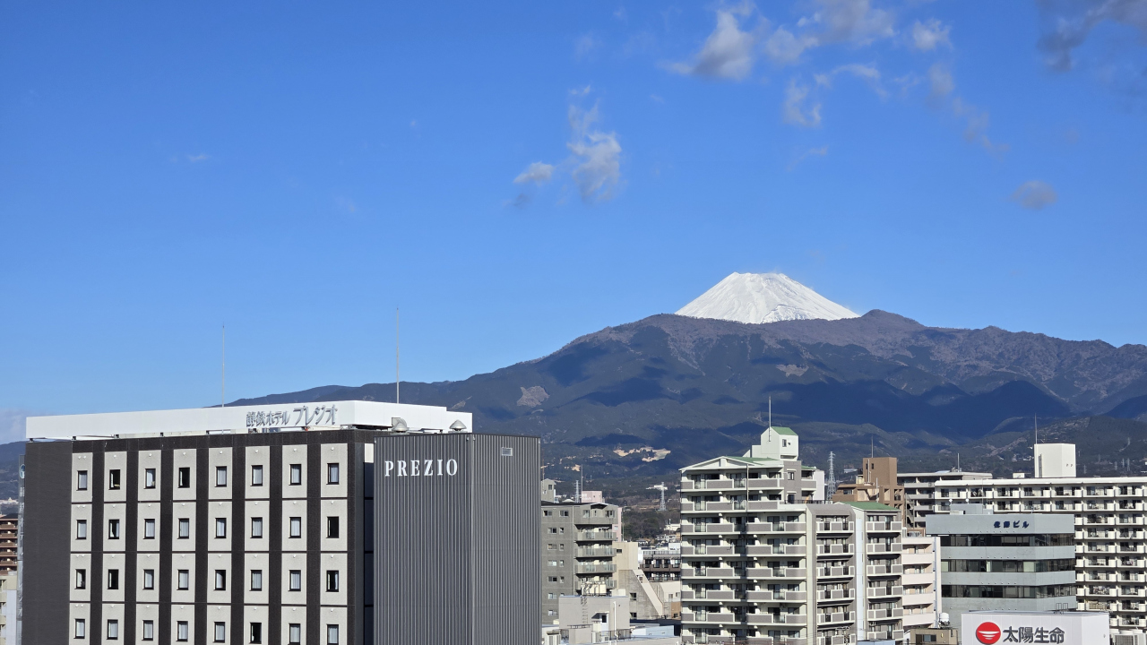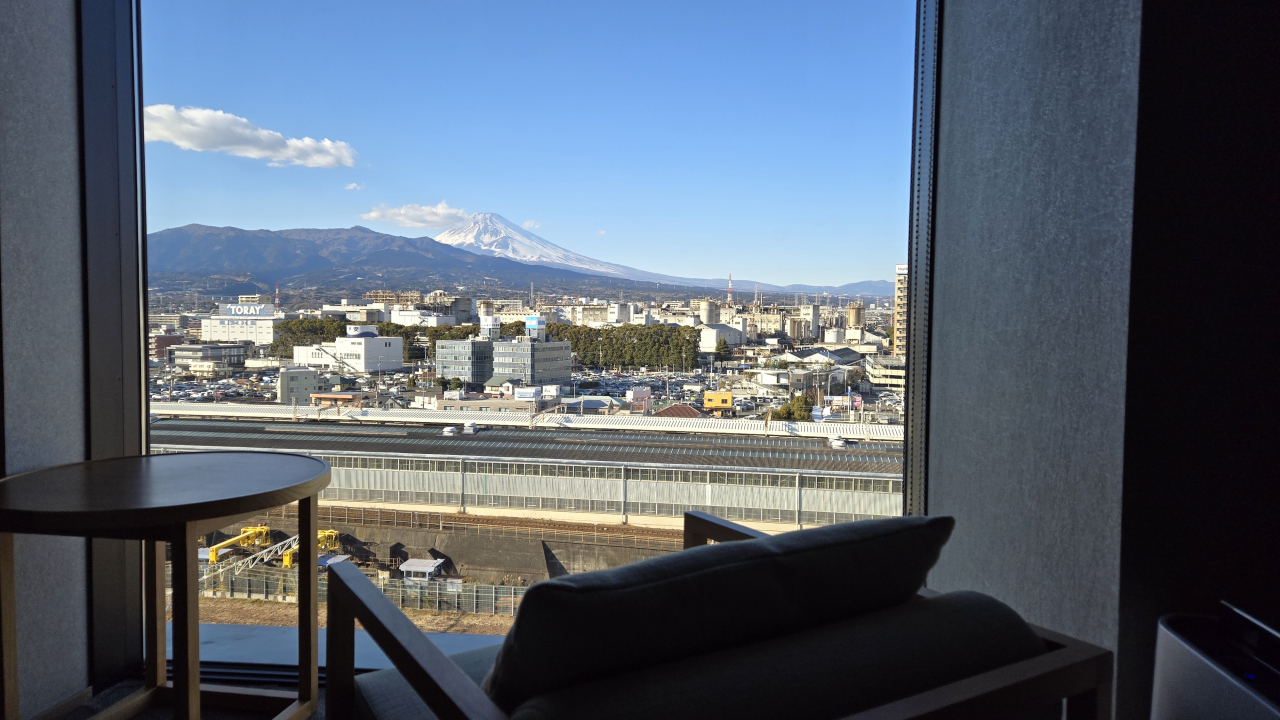 今回予約前に電話を入れて高層階の富士山側の部屋はシングルルームと教えてもらって予約しました、部屋は最上階9階の富士山側にアサインされ天気にも恵まれ愛鷹山の奥に綺麗に富士山が見え良かったです。