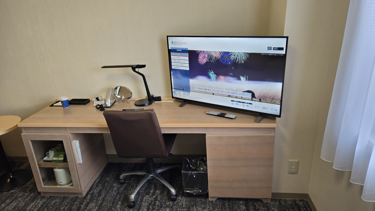 今回宿泊したグランドツインは寝やすいデュベスタイルのベッドメイキングのベッドに加湿空気清浄機、大型のスマートテレビでユーチューブや自身のアカウントで映画等も楽しめ、浴室、洗面、トイレ独立に眺望も良く快適に過ごせます。