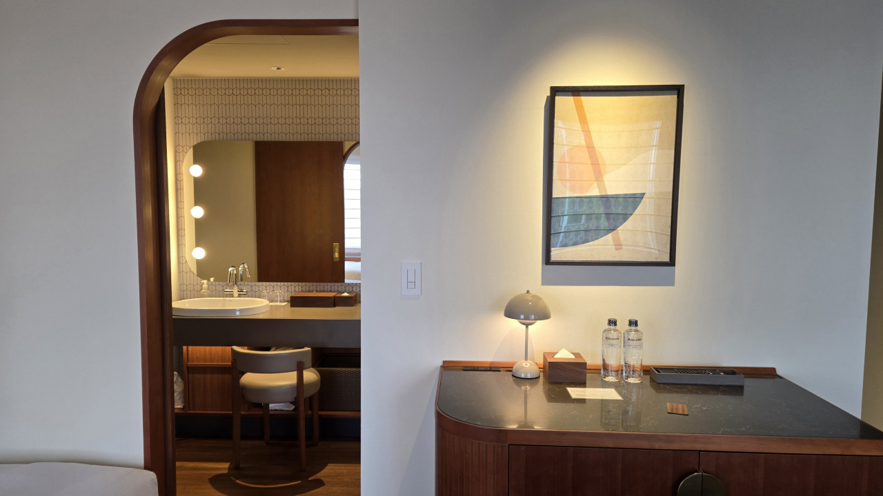 部屋は35㎡でデュベスタイルのベッドメイキングに加湿空気清浄機、大型のスマートテレビ、浴室、洗面、トイレ独立、素敵なインテリアでゆっくり過ごせました。またグランドフロアはアメニティに特典も充実で、アメニティは通常の物の他にドリップコーヒー、お茶と紅茶4種類、ミネラルウォーター4本、ビール2本、リンゴジュースに桃のジュース、バスソルト等と部屋でもゆっくり楽しめお気に入りです。またホテルのレストランセレーノでお酒を含むドリンクがフリーフローなのも良いですね。