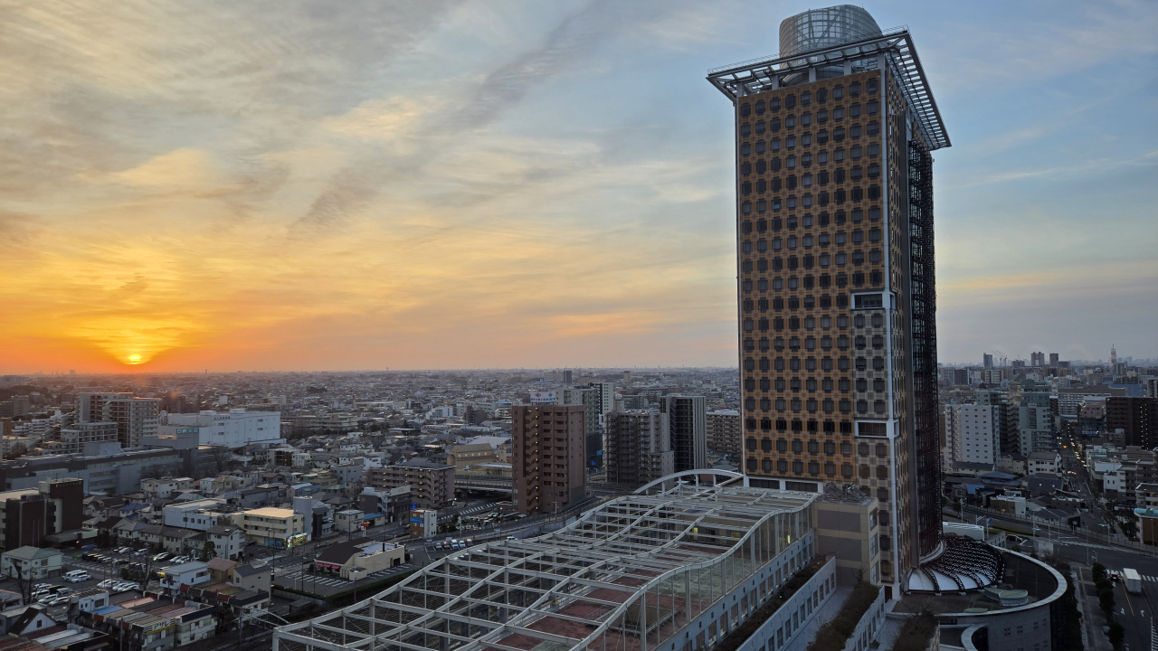 グランドキングの部屋はさいたま新都心駅方向の眺望でさいたまスーパーアリーナや高層マンション群、鉄道の様子も楽しめます。