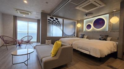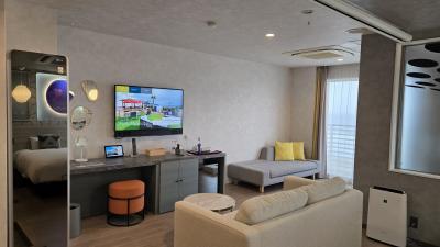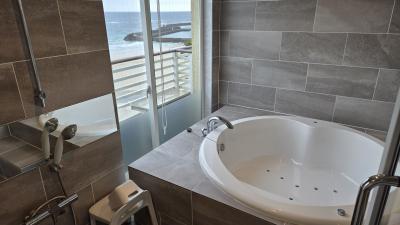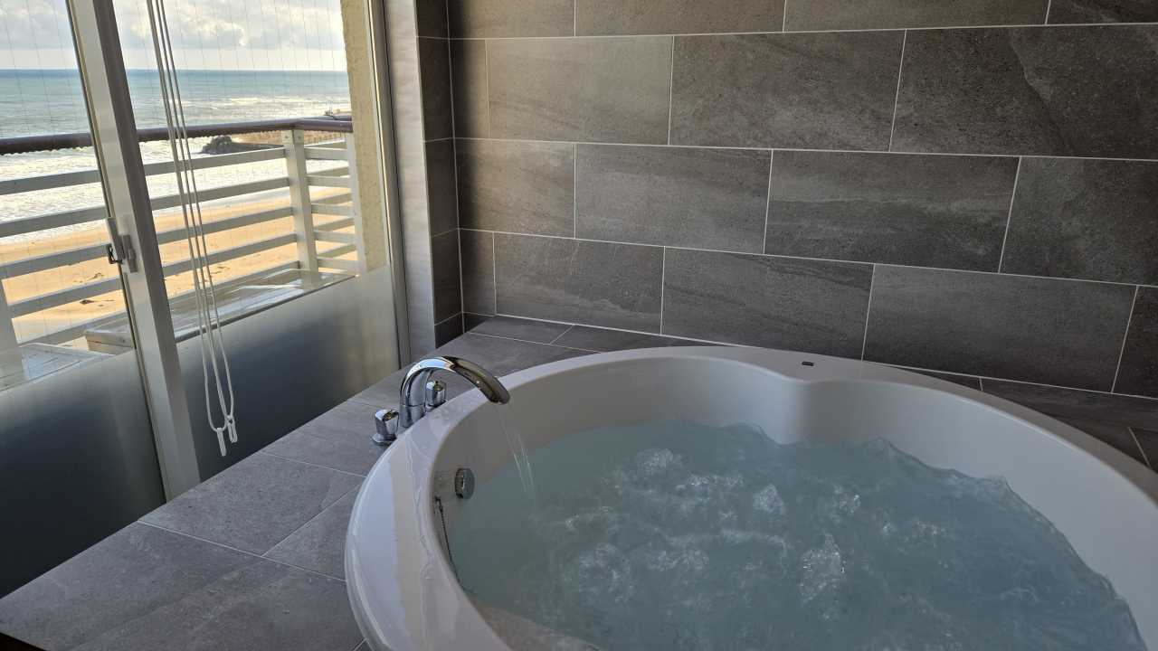 今回宿泊したジュニアスイートとスイートは最近改装され部屋が綺麗で最上階5階にありお気に入りです。部屋の設備も色々工夫されていて部屋で景色を見ながらゆっくりできるのも良いですね、ベッドはリモコンでリラックスしやすい角度に変更できたり、大型のスマートテレビや、100インチのスクリーンで映画等が楽しめるのもお気に入りですが、一番のお気に入りは太平洋を望みながら部屋でジャグジーに入れる浴室が最高です!アクセスもリゾートホテルでは良く御宿駅徒歩10分、コンビニのセブンイレブンも歩いて3分くらいにあり便利です。