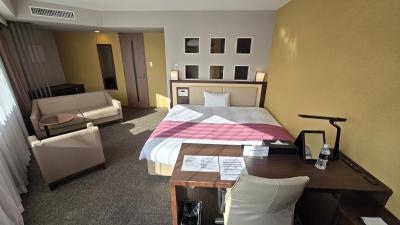 部屋はシモンズのデュベスタイルのベッドメイキングに加湿空気清浄機、テーブルに椅子も丁度よい大きさで快適に過ごせ、お風呂はユニットバスですが浴槽が広いのでゆっくりできます