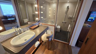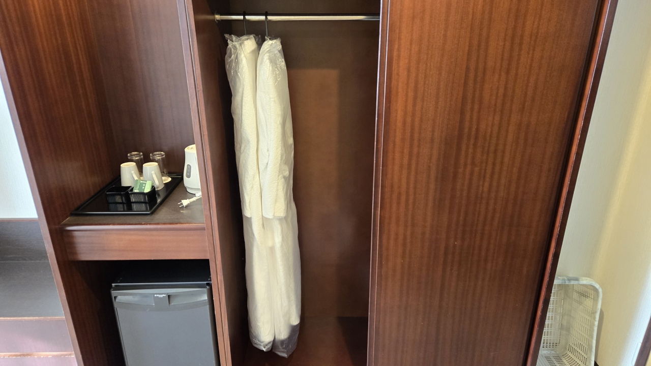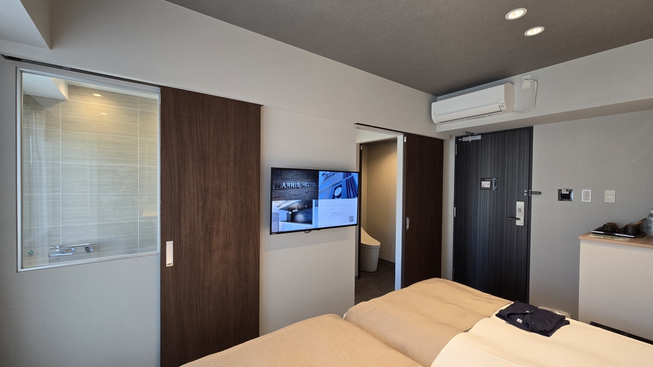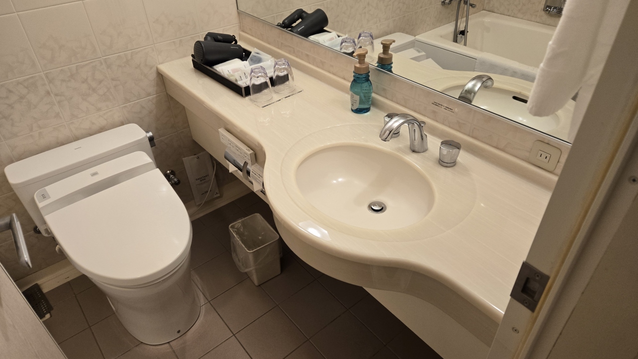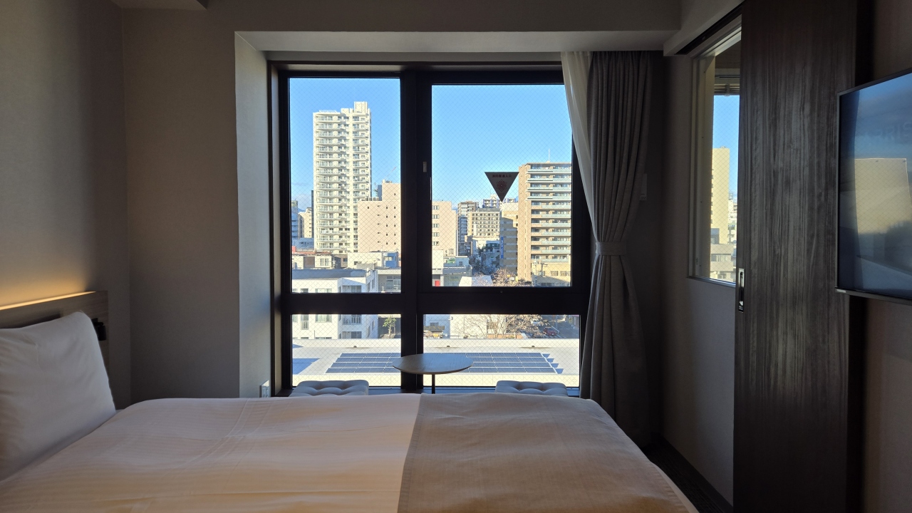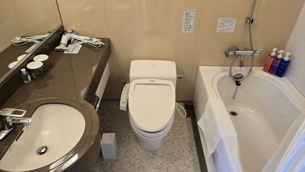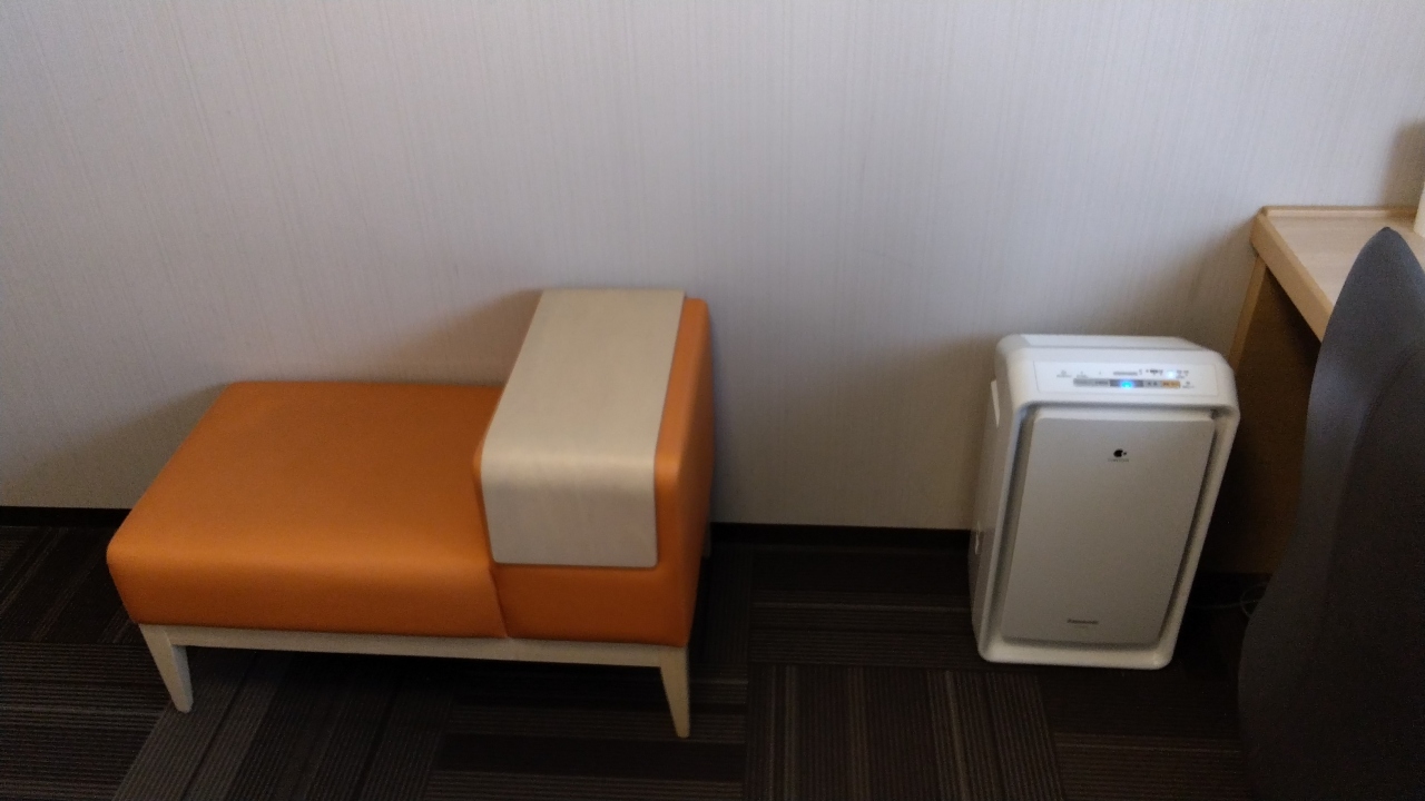 部屋はツインにしてはコンパクトな20㎡ですが良く考えられていて、デュベスタイルのベッドメイキングにスマートテレビ、冷蔵庫はツードアで連泊には便利でした。水回りはお風呂(ビューバス)、洗面、トイレが独立で、洗面カウンターが広くとってあり便利でした。ツインの部屋は部屋に加湿器が用意してありました。