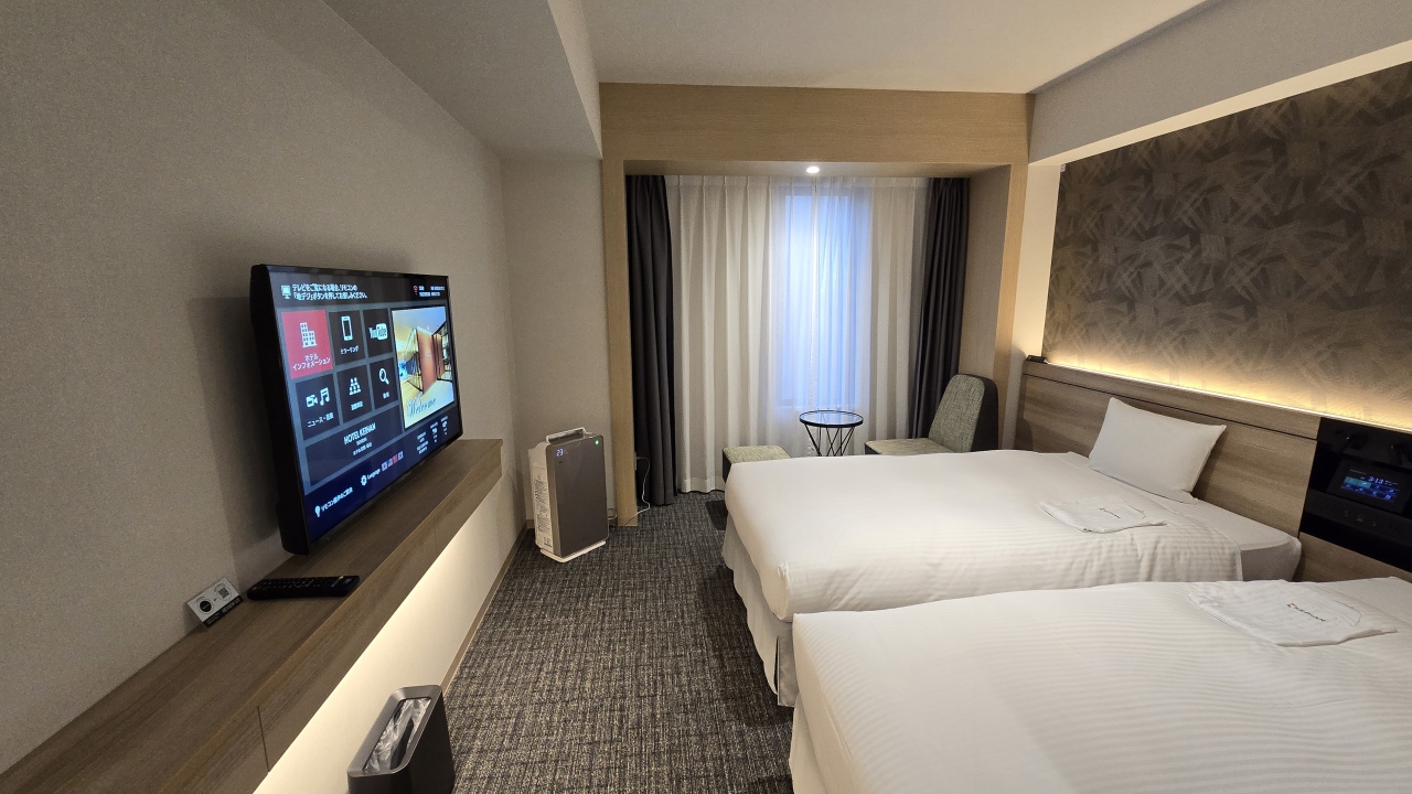 今回宿泊したグランドスーペリアツインは39㎡あり前回のグランドツイン35㎡より4㎡広くより快適でした、ベッドはデュベスタイルのベッドメイキングに加湿空気清浄機、大型のスマートテレビで自分のアカウントで映画等が楽しめ、お風呂、洗面室、トイレ独立なのも良いですね。