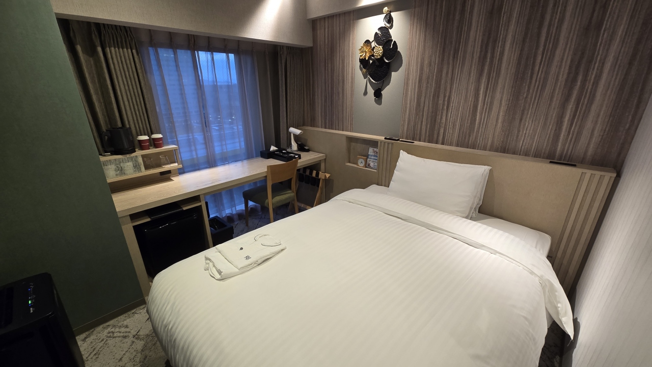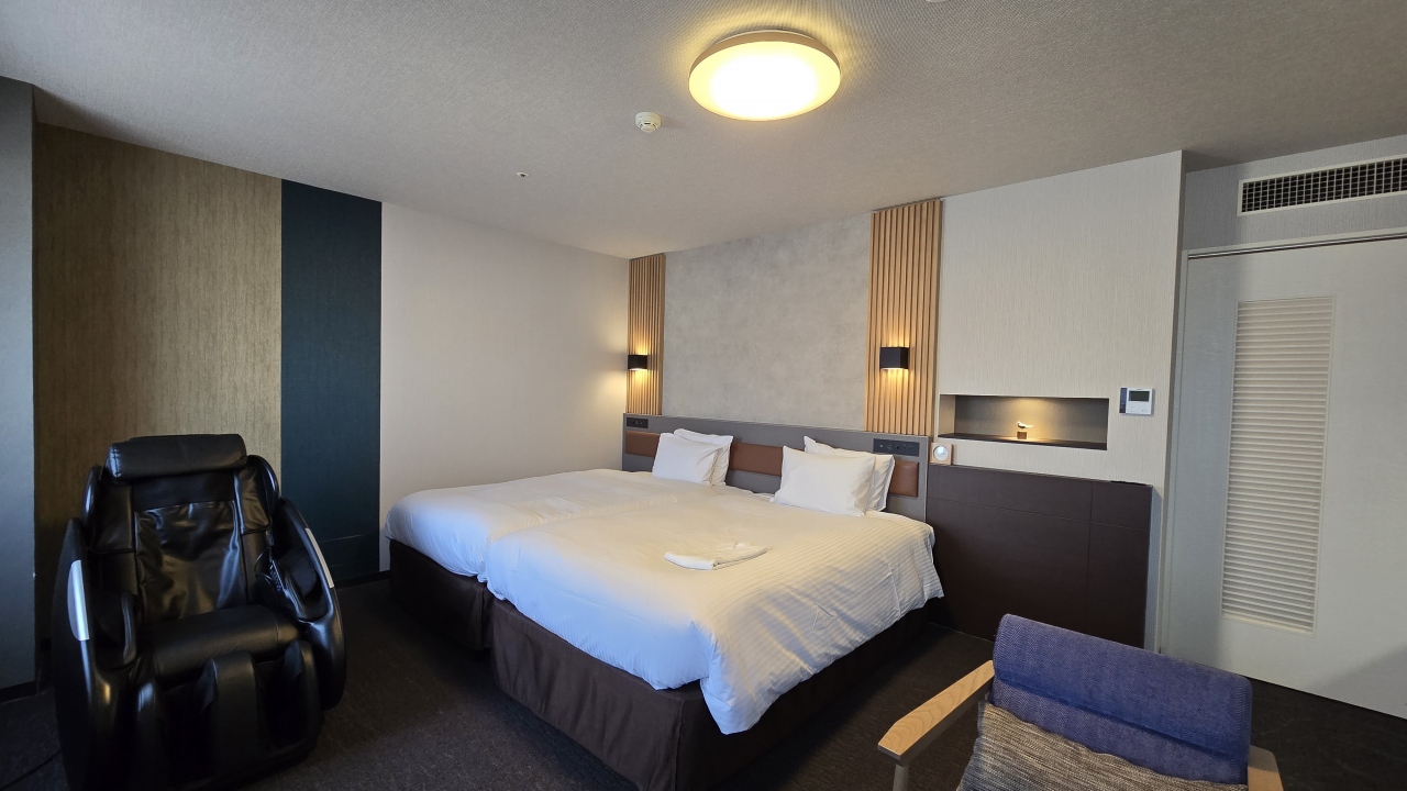 5年前の宿泊履歴が残っていてチェックイン時に前回と同じ部屋を用意しましたと感じよく対応してもらいました。デラックスツインは26㎡あり必須のデュベスタイルのベッドメイキングに加湿空気清浄機、テーブルに椅子もあり快適に過ごせました。アメニティは1階に用意されていて、通常の物の他にアールグレイやフレバーティーも用意されていて良かったです。新潟駅もだいぶ工事が進みホテルまでのアプローチも良くなり駅徒歩5分と表示されてますがもう少し近くなった感じがしました。スタッフの対応は笑顔で良く心地よい滞在でした。