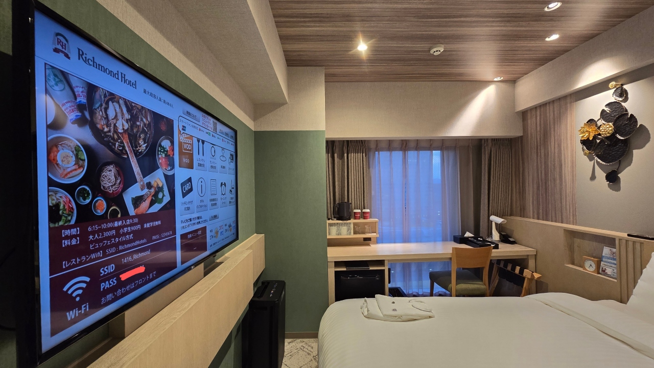 盛岡のリッチモンドホテルは東北6県の最後の出店でしたが、立地、部屋、朝食、接客どれをとっても満足度が高いですね!今回で3回目の宿泊でしたが、3回共ステーションビューツインを予約しましたが、高層階のコーナーの部屋だと窓が2方向にあり開放的で、岩手山に盛岡駅越しの美しい景色が見えてお気に入りです。部屋はリッチモンドホテルスタンダードのデュベスタイルのベッドメイキングに、加湿空気清浄機、ミラーリング対応テレビに、お風呂、トイレ、洗面独立で快適です。