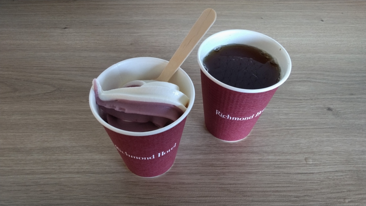 リッチモンドホテル山形駅前のツインルームは34㎡あり広めで快適に過ごせてお気に入りの部屋です。ベッドはリッチモンドホテルスタンダードのデュベスタイルのベッドメイキングのハリウッドツインに、ソファーにテーブルもゆとりがあり、マッサージチェアにスマートテレビで快適に2泊過ごせました。最上階12階の部屋からは幾層にも連なる山形の山並みも美しく楽しめよかったです。アメニティはフロント階2階に用意されていて通常の物の他に、ドリップコーヒー、入浴剤、基礎化粧品もあって良いですね、またラウンジサービスで、コーヒーにソフトドリンクの他に、1日目はバニラのソフトクリームに葡萄のソフトクリームで、翌日はタイミング良く抹茶のソフトクリームに変更(バニラ以外は定期的に変わるみたいです)になって3種類楽しめよかったです、特にバニラのソフトクリーム(バニラは定番品だと思います)があっさりしていて美味しく、コーヒーとよくあいました。スタッフの対応はどこのリッチモンドホテルに宿泊しても心地よく快適で今回ももちろん快適でした。