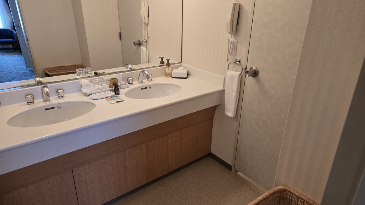 ベッドルームはデュベスタイルのベッドメイキングの寝やすいベッドでゆっくりできました。洗面台はツーボール、浴室はミラブルシャワーヘッド、アメニティはタルゴのシャンプー類にボディークリーム、入浴剤、バスローブ、コーヒーメーカーにミネラルウォーター等で快適に過ごせました。館内のレストランも、和食、寿司、カフェ、ビュッフェ、バーもありホテル滞在中も楽しく過ごせました。