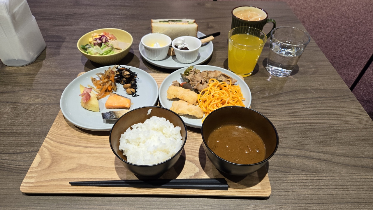 朝食は人気で、615分スタートのビュッフェで瓶に入った海鮮でつくる海鮮丼や、盛岡三大麺、ロイヤルホストのカレーにスイートポテト、地元のヨーグルトに牛乳等、2日共朝食をとりましたが1日は和食中心に、2日目はパンにカレーの洋食中心にしましたが、種類も多く美味しく満足ですね、朝食会場は時間限定ですがドリンクフリーのラウンジで使えるのも良いですね。