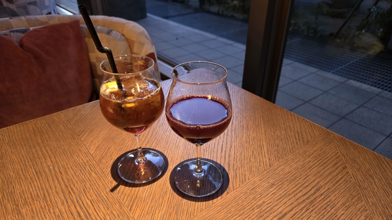 最近お気に入りのホテルで、食事にグランドフロア特典のフリーフローでお酒を楽しみました