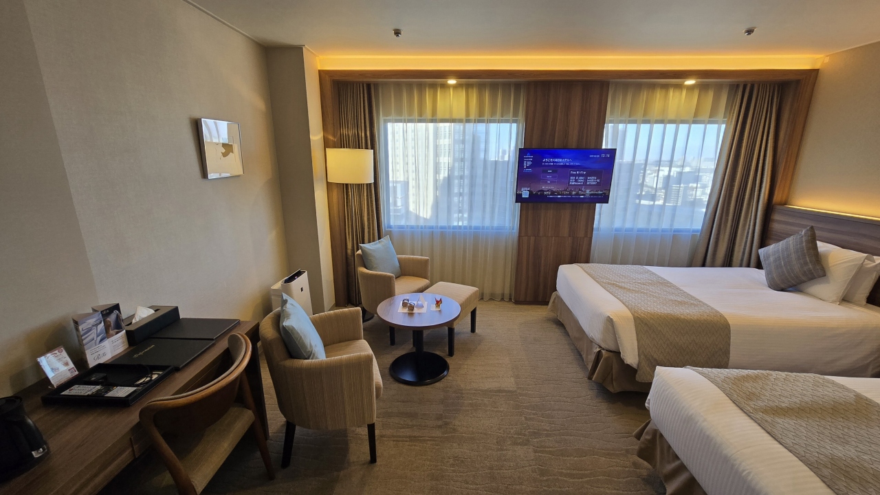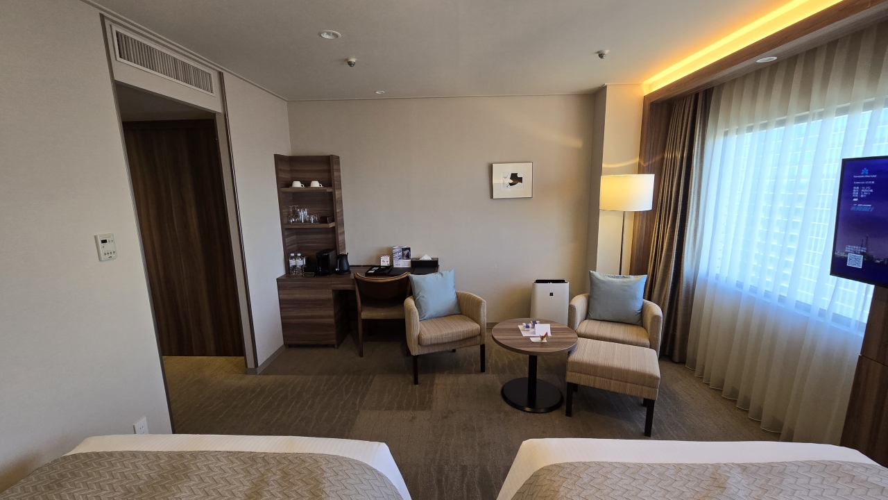 今回で4回目の宿泊で2年ぶりに連泊で宿泊し、前回と同じタイプの10階のツインにアサインされました 。ツインの部屋はお風呂が独立で室内に洗面化粧台があるので使いやすく便利良かったです、ベッドも寝やすくデュベスタイルのベッドメイキングに加湿空気清浄機、ユーチューブとミラーリング対応テレビで快適に過ごせました。アメニティはフロント階でもらいますが通常のアメニティの他に紅茶、インスタントコーヒー、基礎化粧品等があり、チェックイン時にミネラルウォーターをもらいました。