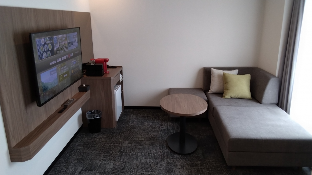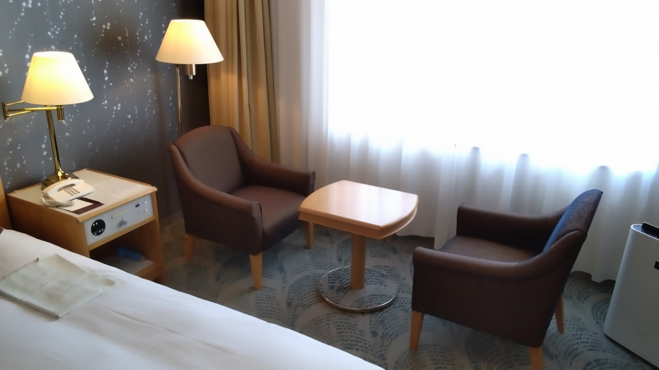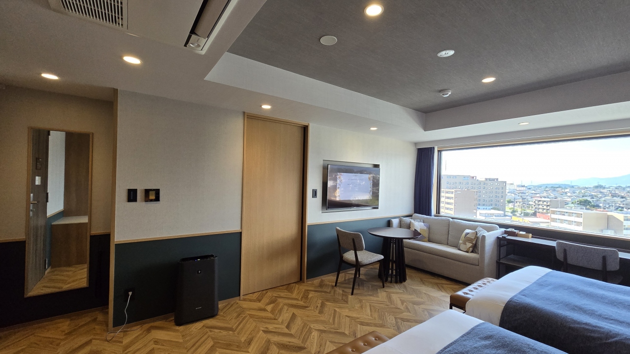 部屋はデュベスタイルのベッドメイキングに、リクエストで加湿空気清浄機、窓側にソファーにテーブルがあり景色を見ながらゆっくりできてお気に入りです。