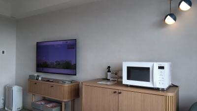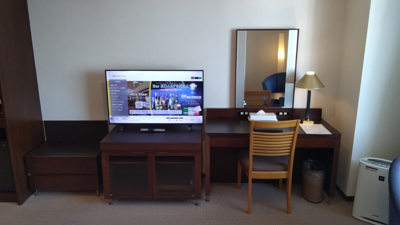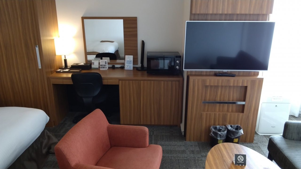 部屋はデュベスタイルのベッドメイキングに加湿空気清浄機、スマートテレビ、窓側に700mm角のテーブル、お風呂、トイレ、洗面独立で快適に過ごせました、長期滞在する人も多くリクエストで部屋に電子レンジを用意してくれるのも良いですね。