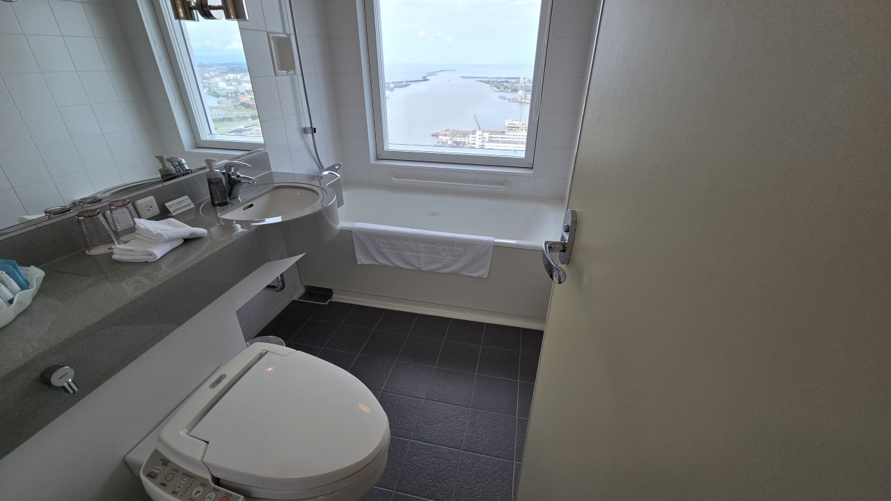 デラックスダブル30㎡の部屋は2方向の窓に、浴室もビューバスで開放的で良かったですね。