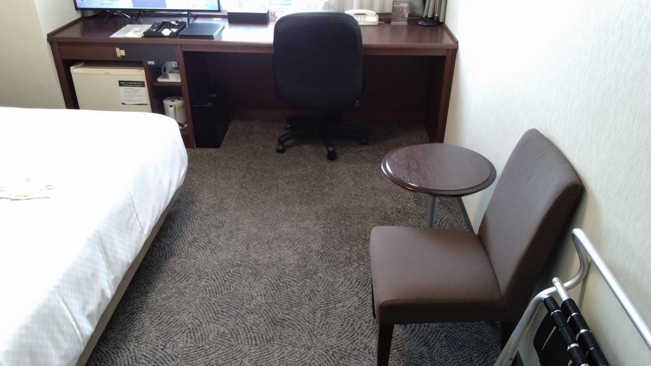 部屋はデラックスツインに2泊しましたが、デラックスツインは部屋から萬代橋も望め、ベッドはデュベスタイルのベッドメイキングに、窓側にテーブルにイス、お風呂、洗面台、トイレ独立で快適に過ごせます。