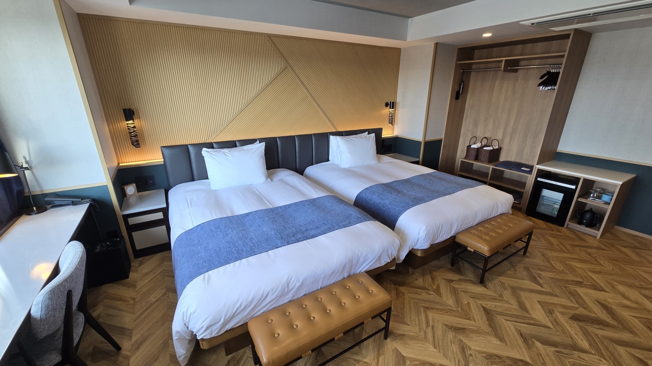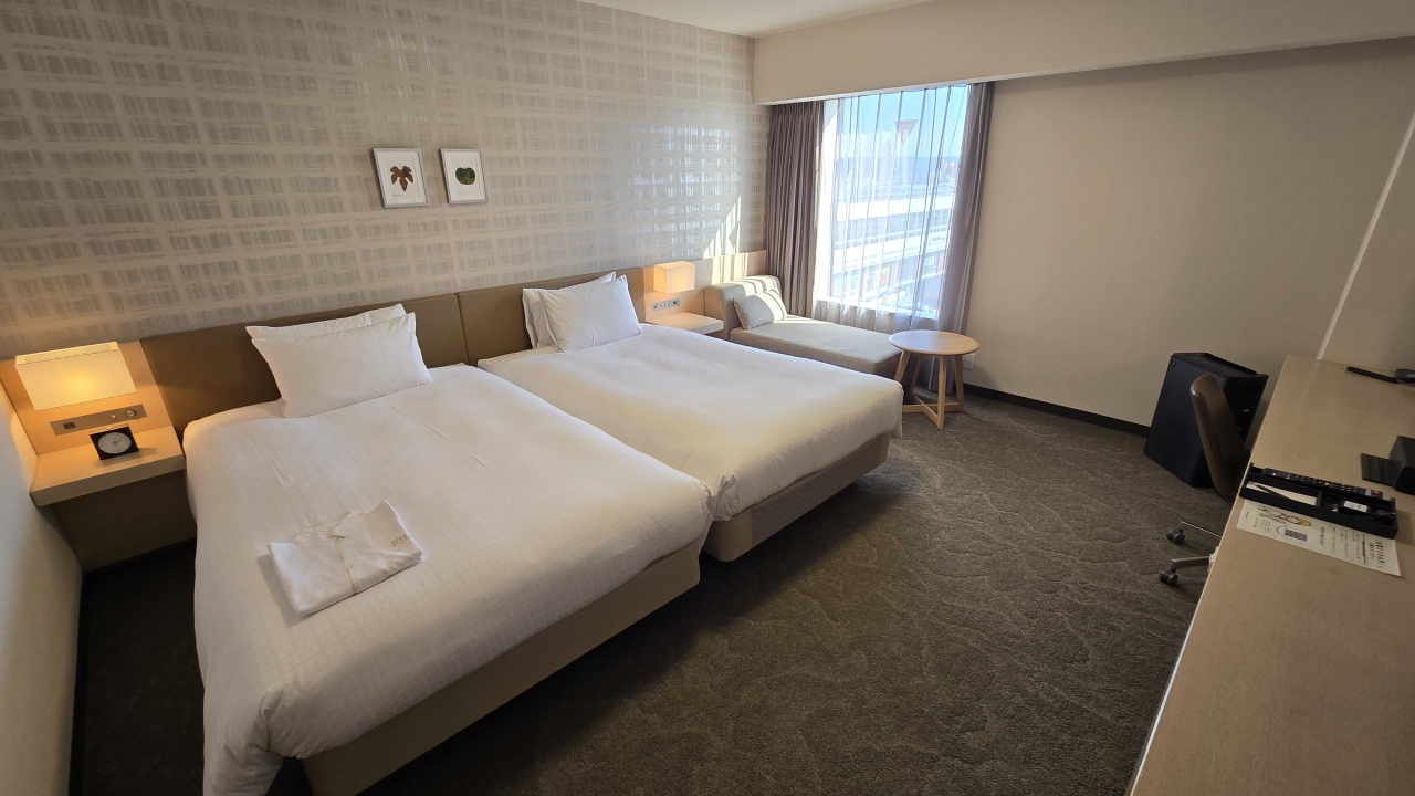 2024年4月に9〜11階がリニューアルされ、今回宿泊したニュースタンダードフロアのデラックスツインはホテル内で一番広く、お風呂、洗面、トイレ独立で、リニュアル前はシングルだった部屋2室が1室のデラックスツインに改装されたので部屋内は新しく、レイアウトも良く過ごしやすくお気に入りの部屋になりました。