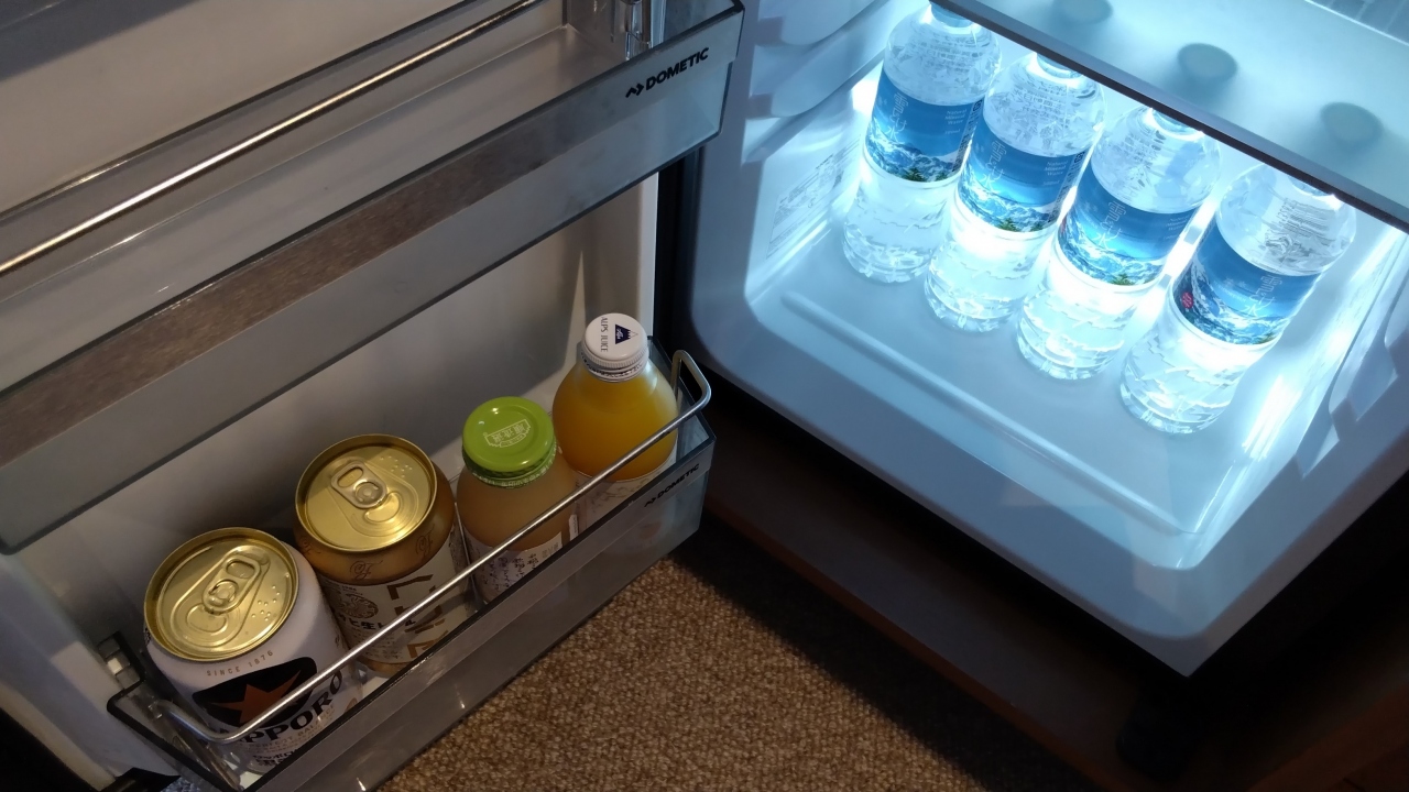 アメニティも良く、特に飲み物は充実でドリップコーヒー、紅茶に緑茶等4種類、冷蔵庫内の飲み物も無料でミネラルウォーター4本、ビール2本、国産みかんジュース、国産桃ジュースで部屋でゆっくりできました。