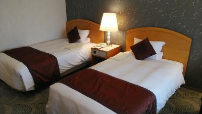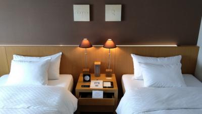 デラックスツイン34㎡はベッドが部屋の奥に2台あり部屋が使いやすく、ベッドは122cm幅のデュベスタイルのベッドメイキングに加湿空気清浄機、パナソニックのマッサージチェア、窓も2カ所あり、お風呂、洗面台、トイレが独立で、お気に入りの部屋でゆっくり過ごせました。