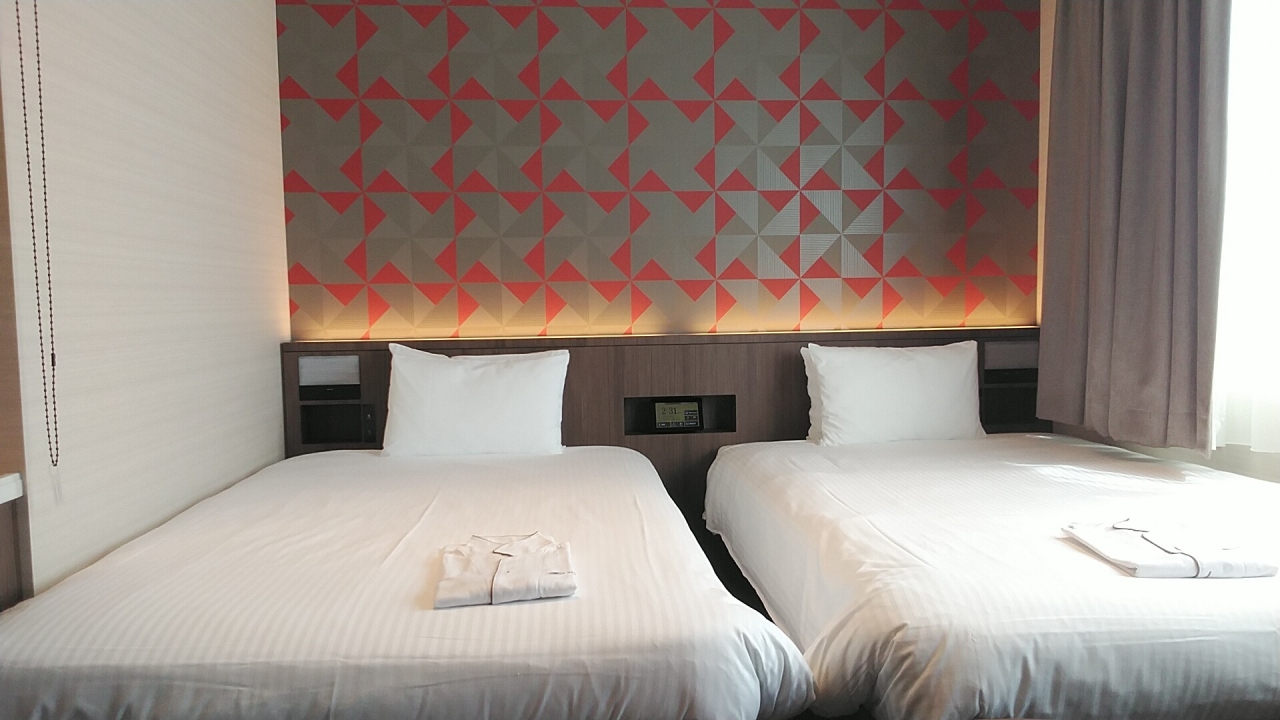 連泊ではじめて宿泊しました。部屋は15㎡のダブルルームAタイプで11階にアサインされ、予約時は狭いかなと思ってましたがコンパクトですが上手く工夫されていてよかったですね!部屋はデュベスタイルのベッドメイキングの160cm巾のベッドに加湿空気清浄機、部屋にはミネラルウォーターに緑茶、ほうじ茶が用意されてます。1階のエレベーター横のアメニティーバーで通常の歯ブラシ等のアメニティーの他、ドリップコーヒーに基礎化粧品、マウスウォッシュ、除菌シート等でよかったです。