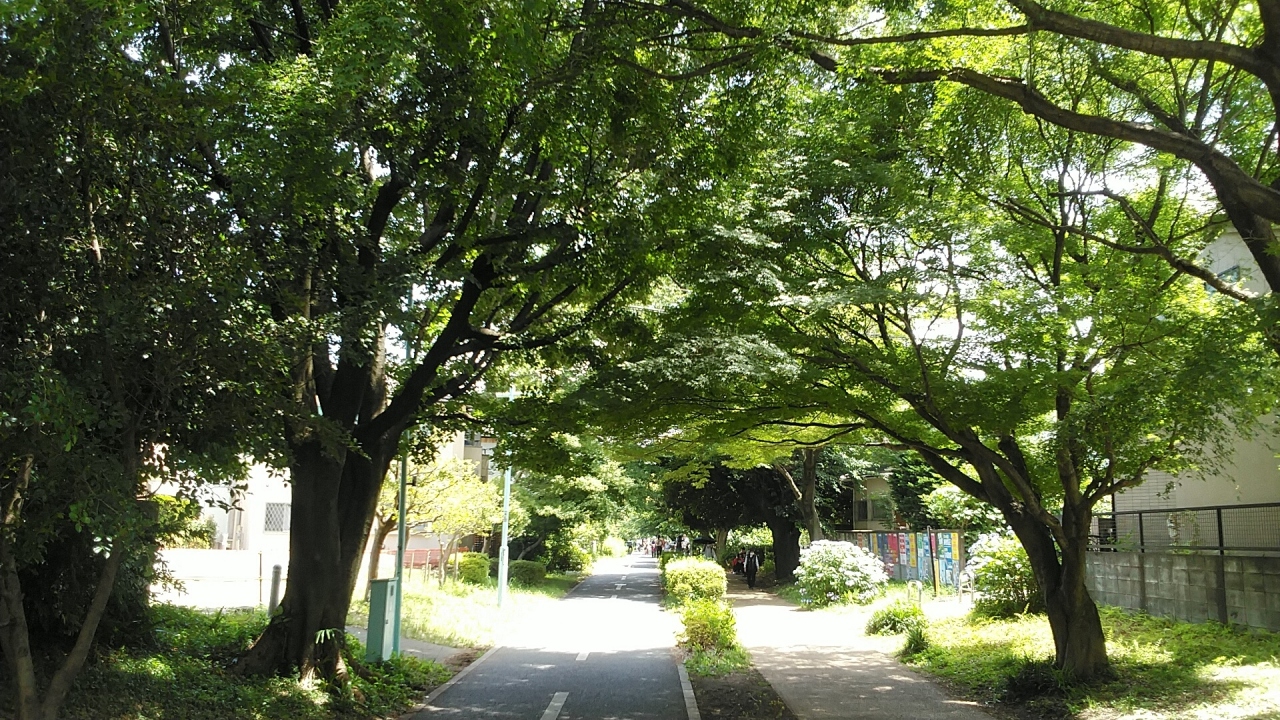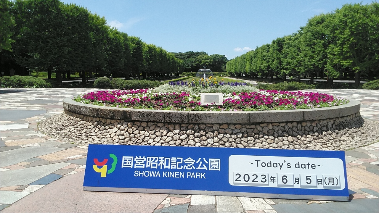 今回は6月5日訪問で紫陽花と花菖蒲を見にいきました。入口は立川駅から徒歩15分くらいの立川ゲートから入りました。入口付近には秋に人気の黄葉が素敵なイチョウ並木があり、