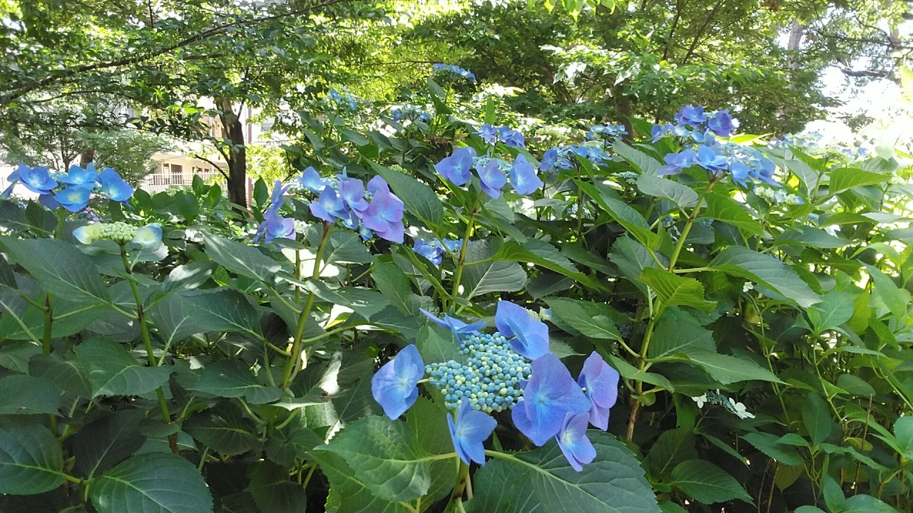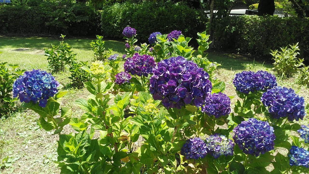 入口から10分くらいのふれあい広場北斜面には紫陽花が見頃近くになってました。