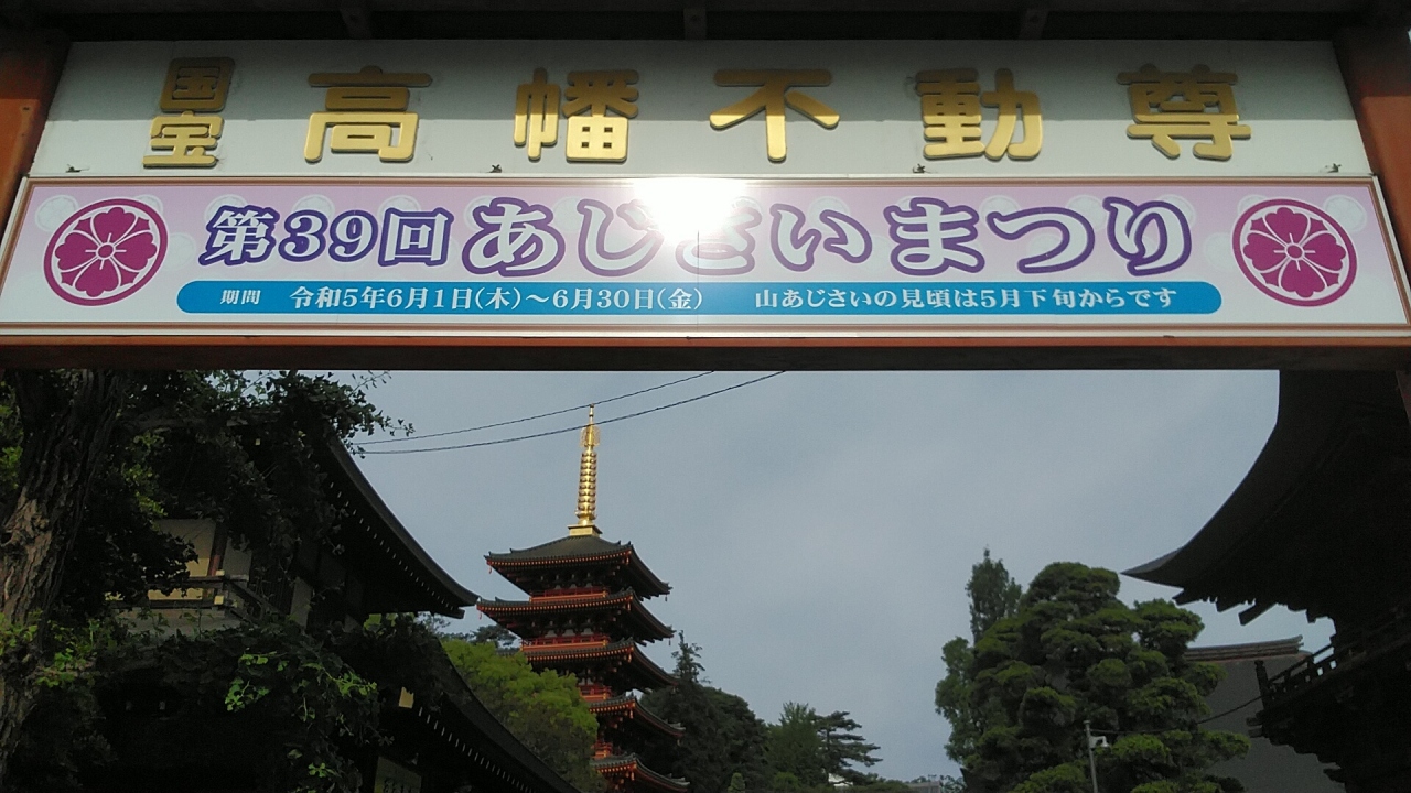 高幡不動駅から歩いて5分くらいでアクセスもいいですね!紫陽花は綺麗に色付いて広い境内を散策できます。関東三不動の一つと言われ関東有数の古刹と紫陽花が素敵な風景を楽しませてくれお勧めです。