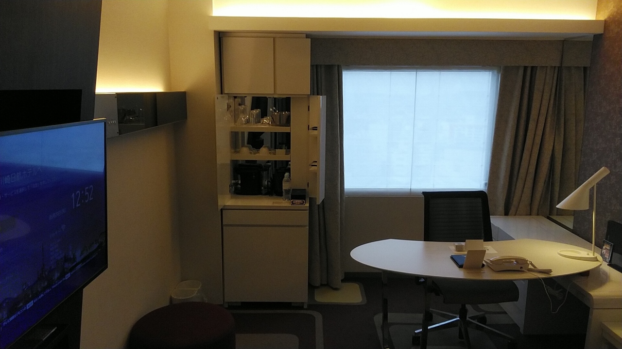 部屋は11階の改装済みのスーペリアダブル“Japanese Style”デザイナーズルーム24㎡で表記面積より広く感じベッドメイキングはデュベスタイルで加湿空気清浄機もあり、コーヒーマシーンに緑茶ほうじ茶、ミネラルウォーターで快適に過ごせました。