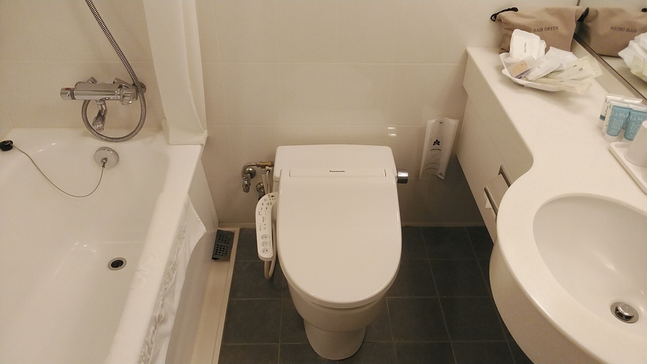 部屋はシャワールームに、トイレと洗面台が同室ですが最上階13階に温泉大浴場があって眺望も良くゆっくり楽しめます。温泉は肌触りが良く少しぬめりのある気持ちよい泉質でした。